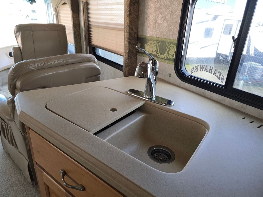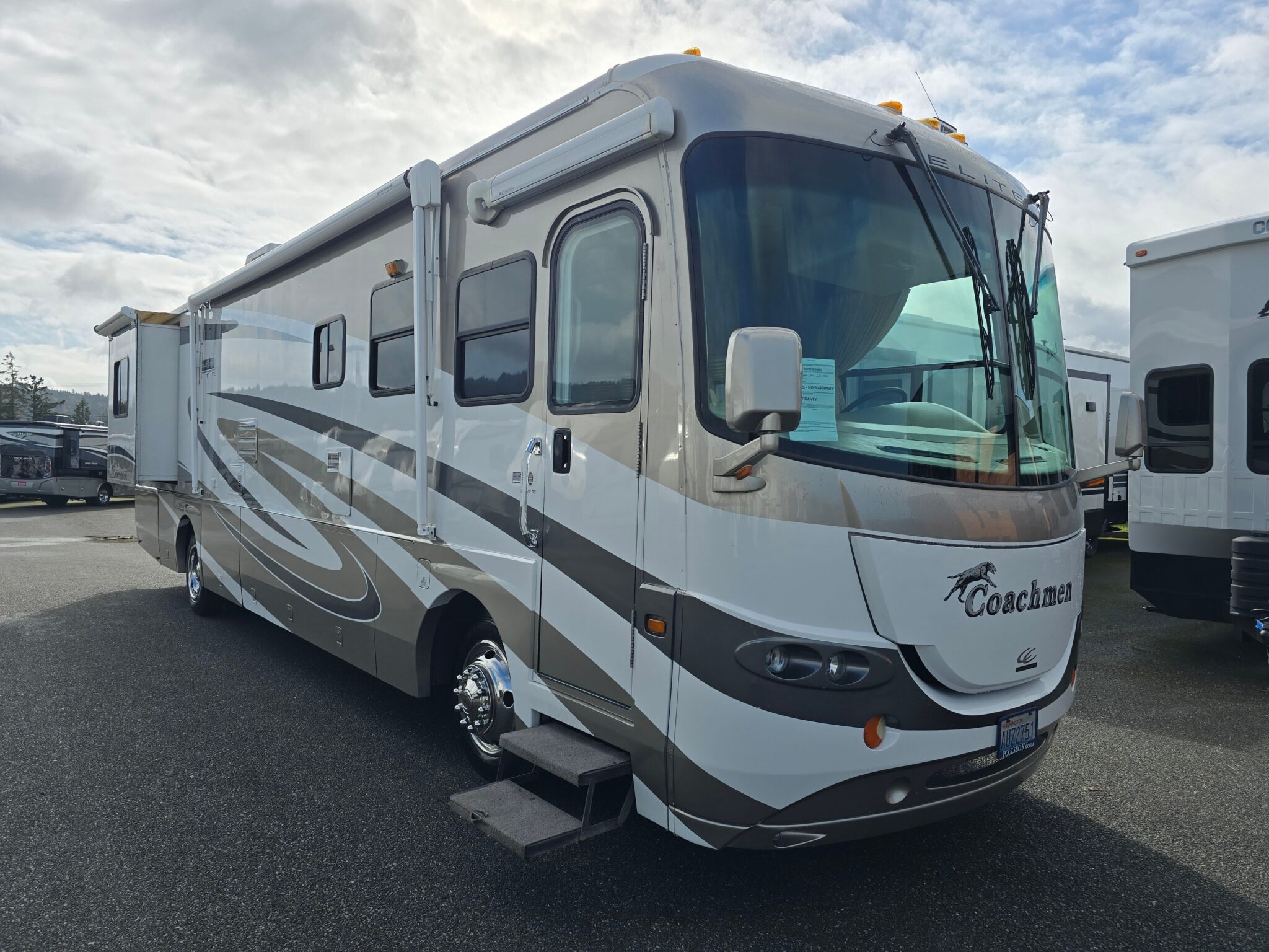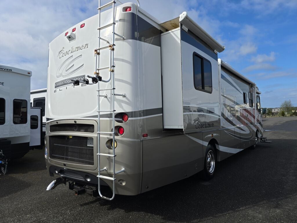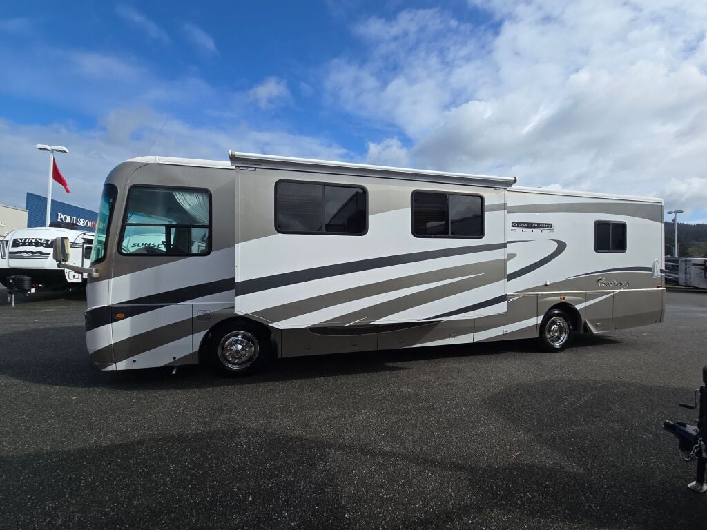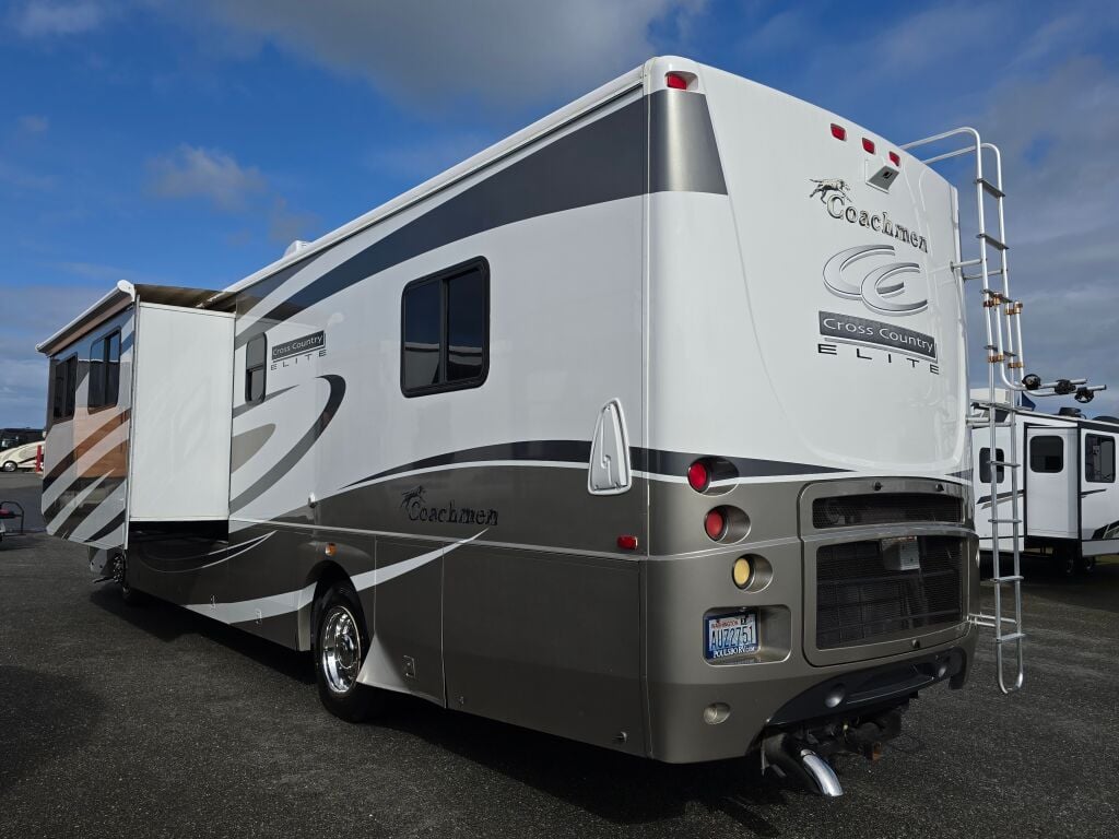 Introducing the exceptional Coachmen Elite 376DS, a remarkable RV designed for those who appreciate both adventure and comfort. This used diesel motorhome extends 38.6 feet, providing ample space for family and friends to join you on unforgettable road trips. Perfect for RV enthusiasts, this model accommodates your desire for exploration while ensuring a spacious living area for relaxation. With two expansive slide-outs, this RV offers enhanced interior space that accommodates diverse sleeping arrangements, offering a cozy atmosphere for everyone. The thoughtfully designed floor plan maximizes functionality and allows for easy movement throughout the living area, making it ideal for both short getaways and extended travels. Equipped with convenient features like leveling jacks and modern audio systems, this motorhome caters to your every need while on the road. As a family-owned, award-winning local RV dealer with multiple locations in Sumner, Everett, Kent, and Mt. Vernon Washington, Poulsbo RV is here to help you find the perfect RV. Embrace the great outdoors and create lasting memories with all the comforts of home in your Coachmen Elite 376DS. Stock#: CC5088, VIN: 4UZAAHAK23CL98553.