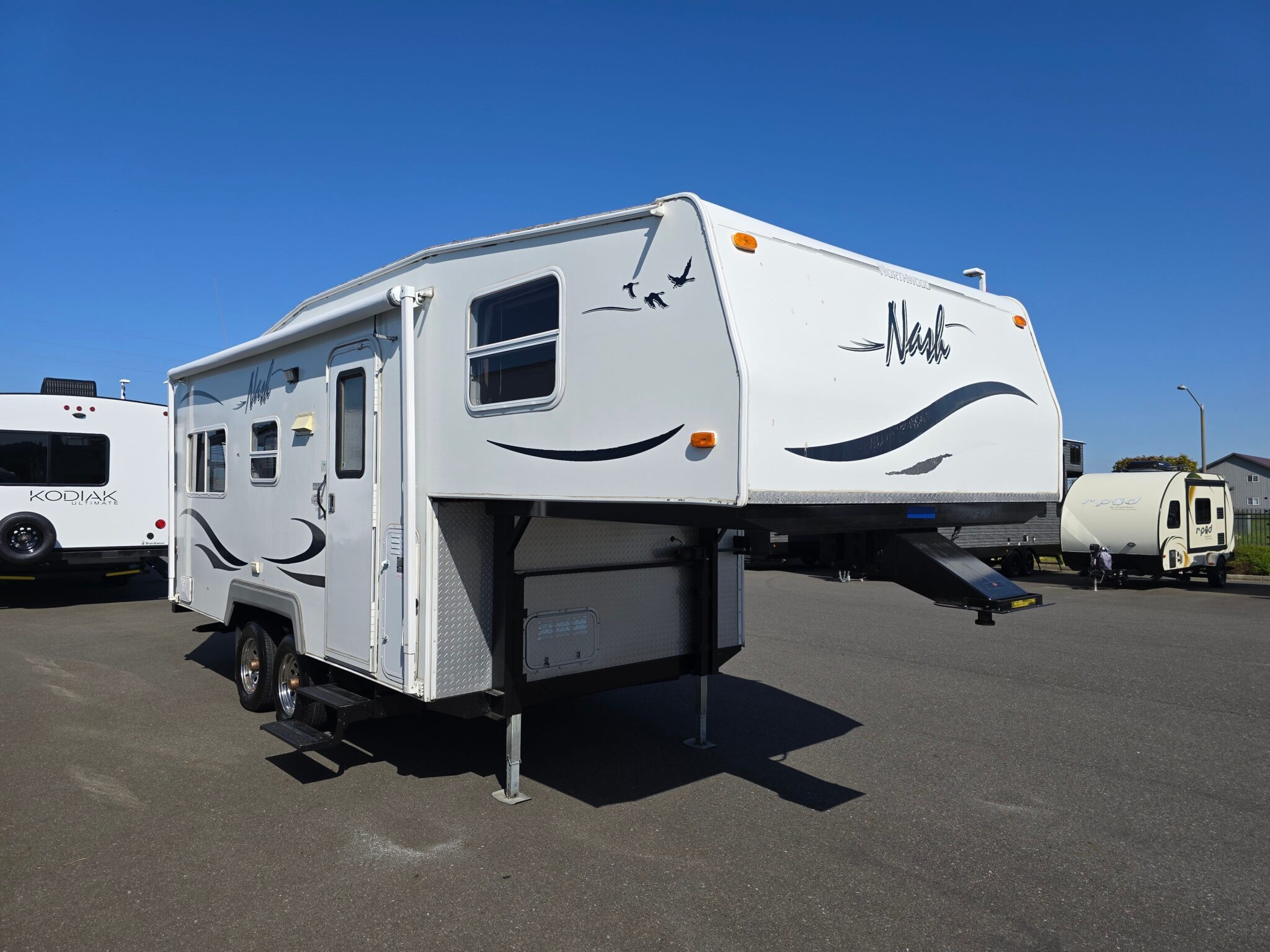 Introducing the 2011 Northwood Nash 21-5R, an exceptional travel trailer designed for families seeking an adventurous getaway. This model spans 22.1 feet in length, making it a convenient size for a variety of settings while providing a comfortable living space. The Nash 21-5R is crafted with care, boasting a dry weight of 4535 pounds and a GVWR of 7000 pounds, allowing it to be easily towed with a suitable vehicle. It features one awning, enhancing your outdoor experience by providing shade and comfort during your travels. With a sleeping capacity of five, this trailer ensures that families can enjoy their adventures together without sacrificing comfort. Inside, you will find an inviting living area that blends functionality with flexibility, perfect for creating lasting memories. The unique layout includes amenities to enhance your RVing experience, such as audio systems for entertainment, leveling jacks for easy setup, and a variety of conveniences that cater to both seasoned travelers and newcomers. This trailer is in used condition but has been well maintained to support many more journeys to come. As a family-owned, award-winning local RV dealer with multiple locations in Sumner, Everett, Kent, and Mt. Vernon Washington, Poulsbo RV is here to help you find the perfect RV. Stock#: CC5083, VIN: 4N15R2129B0135957.