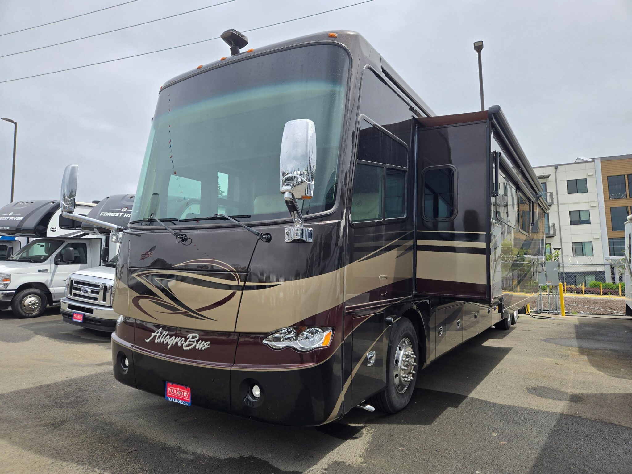 Introducing the exceptional 2012 Tiffin Motorhomes Allegro Bus 43QGP, a remarkable vehicle designed for families and adventurers seeking the perfect blend of comfort and utility. This spacious RV stretches an impressive 43.64 feet in length, boasting a sleeping capacity of up to eight individuals, making it an ideal choice for family getaways or trips with friends. With a fuel-efficient diesel engine, you can expect smooth travels while enjoying the fully equipped living spaces. The unit is in used condition, having been well-maintained throughout its life, ensuring you get a fantastic vehicle ready for your next adventure. It features four slide-outs that enhance the living area, adding even more space for relaxation and entertainment. The enhanced layout is perfect for gatherings and family moments. With one awning providing shade and comfort, you can unwind outdoors as well. This RV is fitted with front and rear power leveling jacks, making setup a breeze at any campsite. The powerful RV has a Gross Vehicle Weight Rating of 50,901 pounds and a towing capacity of 10,000 pounds, granting you the freedom to bring along toys or additional gear. Whether heading to a national park or a scenic campground, the Allegro Bus promises comfortable living, uninterrupted fun, and flexibility wherever the road takes you. As a family-owned, award-winning local RV dealer with multiple locations in Sumner, Everett, Kent, and Mt. Vernon Washington, Poulsbo RV is here to help you find the perfect RV. Stock#: CC5167, VIN: 5VBBA87AXCA114385.