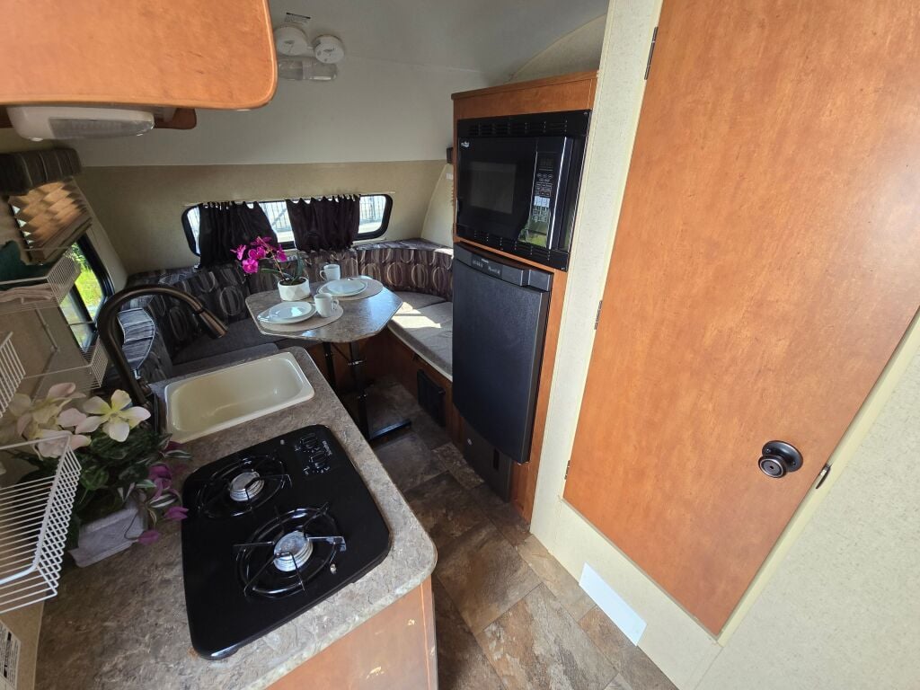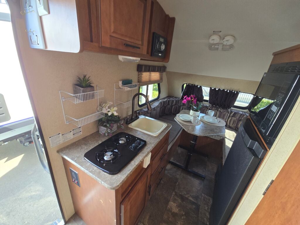 Introducing the 2015 Forest River R-Pod 172, a delightful travel trailer that combines functionality with comfort, perfect for those who love the RV lifestyle. This used model is designed specifically for adventurous families or couples eager to explore the great outdoors without compromising on comfort. With a manageable length of 18.37 feet, the R-Pod is not only easy to tow but also offers a surprisingly spacious interior. It accommodates up to 4 sleepers, making it ideal for family trips or weekend getaways with friends. You will appreciate the thoughtfully designed living area, which invites relaxation after a long day of exploration. The unit is equipped with front and rear manual leveling jacks, allowing for quick and easy setup wherever you decide to park. Weighing a dry weight of 2128 pounds and a hitch weight of 244 pounds, this trailer is perfectly tailored for those seeking a lightweight option without sacrificing living space. The absence of slide-outs contributes to its compact nature while maintaining flexibility and cozy living quarters. As a family-owned, award-winning local RV dealer with multiple locations in Sumner, Everett, Kent, and Mt. Vernon Washington, Poulsbo RV is here to help you find the perfect RV. Stock#: CC5095, VIN: 4X4TRP716F2006886.