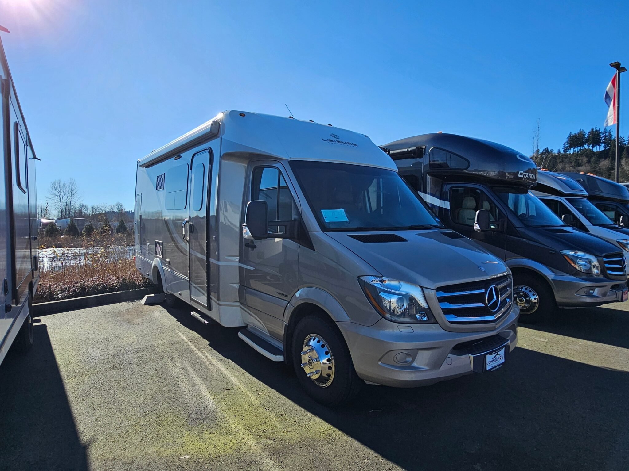 Introducing the 2015 Leisure Travel Unity 24MB, a stunning diesel RV that combines luxury with practicality, perfect for all your traveling adventures. Measuring an impressive 25.1 feet in length, this used model provides ample living space designed for comfort and functionality on the road. Featuring a sleek design powered by a dependable Mercedes-Benz engine, this RV is equipped to tackle the highway with ease. It comfortably accommodates two individuals, making it an ideal choice for couples or solo travelers seeking to explore beautiful destinations. The versatile layout includes thoughtful living areas that maximize comfort, allowing you to relax and unwind after a day of exploration. Notably, it has a convenient awning that extends your outdoor living space, inviting you to enjoy the joys of nature while providing much-needed shade. With a Gross Vehicle Weight Rating (GVWR) of 11,030 pounds, you can take along the essentials without worries. Additional features include slide-outs that enhance the living area, user-friendly leveling jacks, and an advanced audio system to enjoy entertainment on the go. As a family-owned, award-winning local RV dealer with multiple locations in Sumner, Everett, Kent, and Mt. Vernon Washington, Poulsbo RV is here to help you find the perfect RV. Stock#: CC5031, VIN: WDAPF4CC9E9594216.