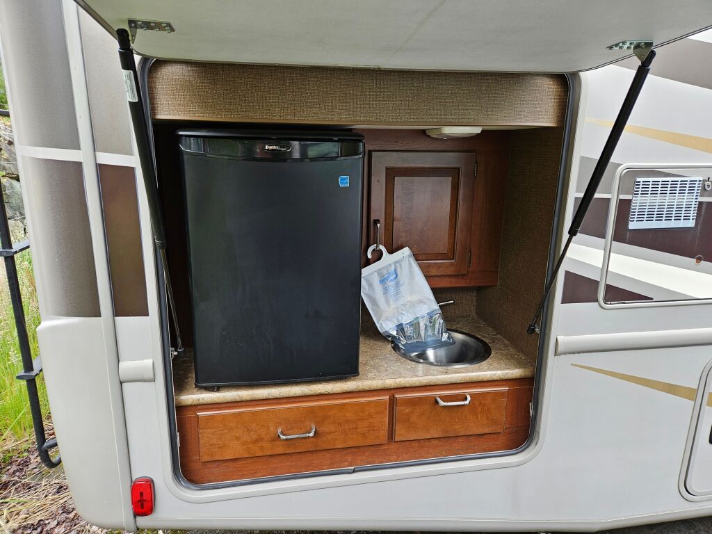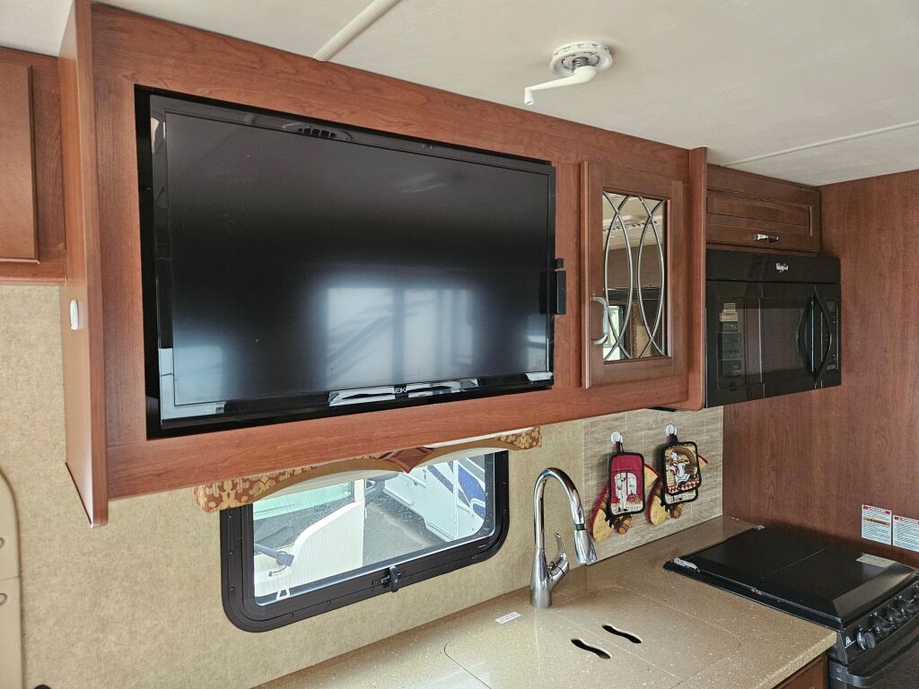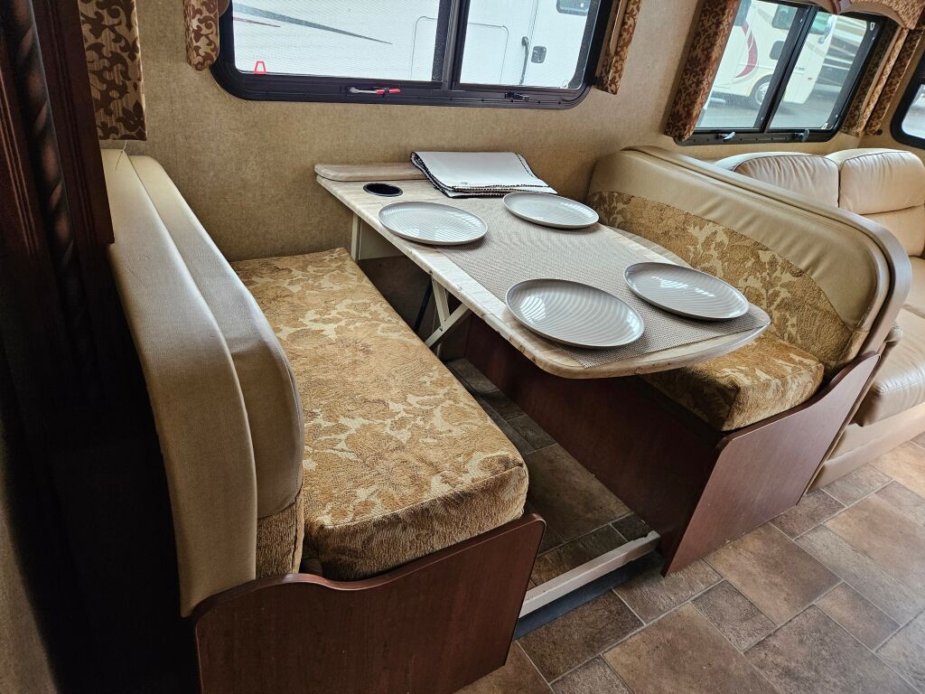 Introducing the 2015 Thor Motor Coach Hurricane 31S, a remarkable recreational vehicle designed for families and adventurers seeking the perfect combination of comfort and mobility. With an impressive length of approximately 31.82 feet, this used RV provides ample space for unforgettable journeys across breathtaking terrains. The Hurricane 31S boasts a generous capacity to sleep up to 8 people, making it an ideal choice for those who wish to travel in larger groups or with family. This RV comes equipped with two slide-outs, enhancing the living area and allowing for more flexibility when it comes to relaxing or entertaining guests. You will appreciate the thoughtful design elements, including interior and exterior speakers that bring your favorite tunes to life, ensuring a fun atmosphere wherever you go. Additionally, the front and rear power leveling jacks provide ease of setup at your destination, allowing you to focus on the adventure ahead. With a robust towing capacity of 8000 pounds, this motorhome is ready to pull along extra gear or even a small trailer. Whether you are camping under the stars or parked by a serene lake, the convenience of this RV is enhanced by its single awning and the power of gas fuel, accommodating your every travel need. As a family-owned, award-winning local RV dealer with multiple locations in Sumner, Everett, Kent, and Mt. Vernon Washington, Poulsbo RV is here to help you find the perfect RV. Stock#: E5756B, VIN: 1F65F5DY1F0A01963
