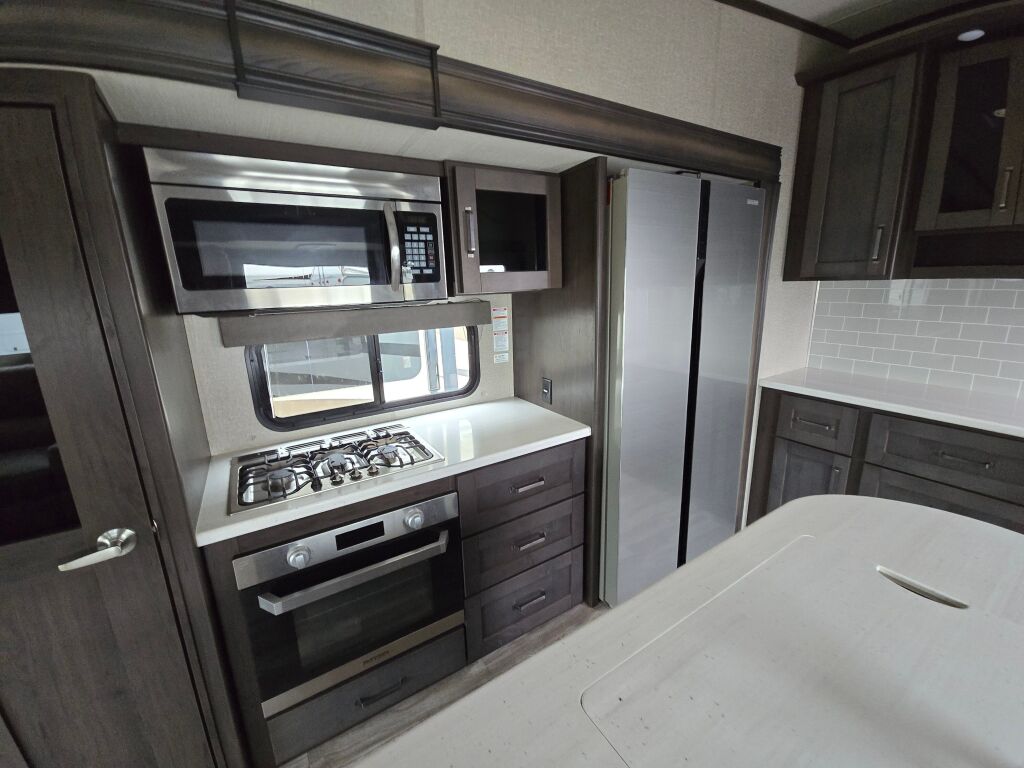 Discover the incredible adventure that awaits you with the 2022 Grand Design Reflection (Fifth Wheel) 337RLS. Perfectly designed for families and groups seeking a home away from home, this spacious fifth wheel boasts a generous length of 35.43 feet, providing ample room to relax and unwind after a day of exploration. This used model is in excellent condition, showcasing a great blend of comfort and functionality that is ideal for RVing enthusiasts. With a sleeping capacity for up to six people, you can share memorable moments in comfort with family and friends, making every journey unforgettable. The well-thought-out interior includes three slide-outs that expand your living space, while the living area invites ease and relaxation. You will appreciate the convenient front and rear power leveling jacks that make setup a breeze, enabling you to focus more on your adventures and less on the hassles of parking. This fifth wheel is also equipped with two awnings, offering generous shade and comfort for outdoor enjoyment. The robust construction provides a dry weight of 10,697 pounds and a GVWR of 13,995 pounds, making it a sturdy option that is easily manageable with a hitch weight of 2,090 pounds. This RV truly embodies the spirit of travel, allowing you to create lasting memories in nature. As a family-owned, award-winning local RV dealer with multiple locations in Sumner, Everett, Kent, and Mt. Vernon Washington, Poulsbo RV is here to help you find the perfect RV. Stock#: CCX5169, VIN: 573FR3723N9918183