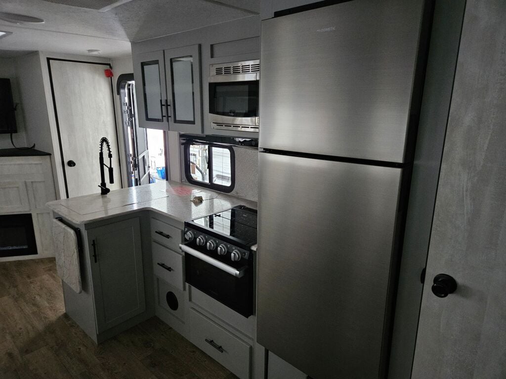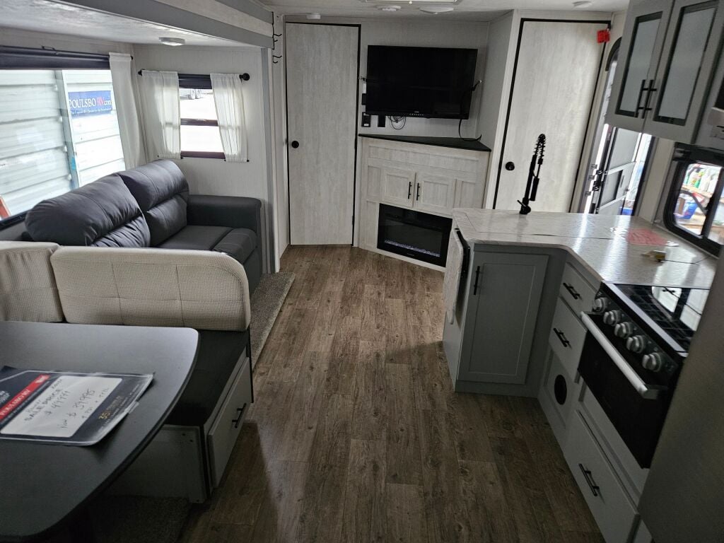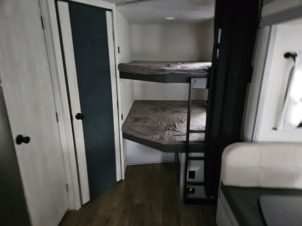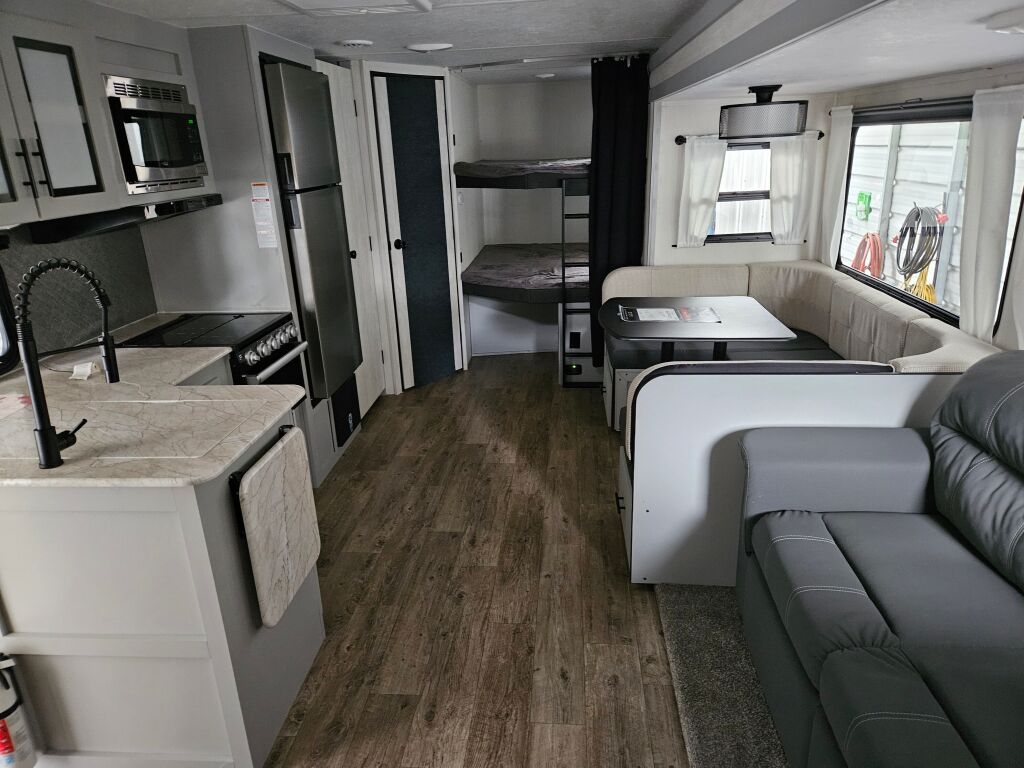 Introducing the 2023 Forest River Rainier 26DBR, a remarkable travel trailer designed for families seeking adventures on the open road. This spacious RV measures 34.12 feet in length, providing ample room for everyone to relax and enjoy their surroundings. With a sleeping capacity of 10, the Rainier is perfect for families or groups, making it easier than ever to bond during your travels. The interior layout includes one slide-out, which expands the living area, creating a comfortable space for dining and entertainment. Additionally, this RV features a convenient bunkhouse layout, allowing for extra privacy and comfort during your trips. In terms of amenities, this used unit comes equipped with front and rear manual leveling jacks, ensuring stability no matter where you park. Weighing in at 6640 pounds and with a gross vehicle weight rating (GVWR) of 9486 pounds, it is manageable for a range of towing vehicles. The hitch weight is 686 pounds, making it suitable for families ready for their next adventure. Enjoy the outdoors with the added convenience of an awning, allowing you to set up a relaxing space in any location. As a family-owned, award-winning local RV dealer with multiple locations in Sumner, Everett, Kent, and Mt. Vernon Washington, Poulsbo RV is here to help you find the perfect RV. Stock#: RNE118A, VIN: 4X4TRNB24PT153580.
