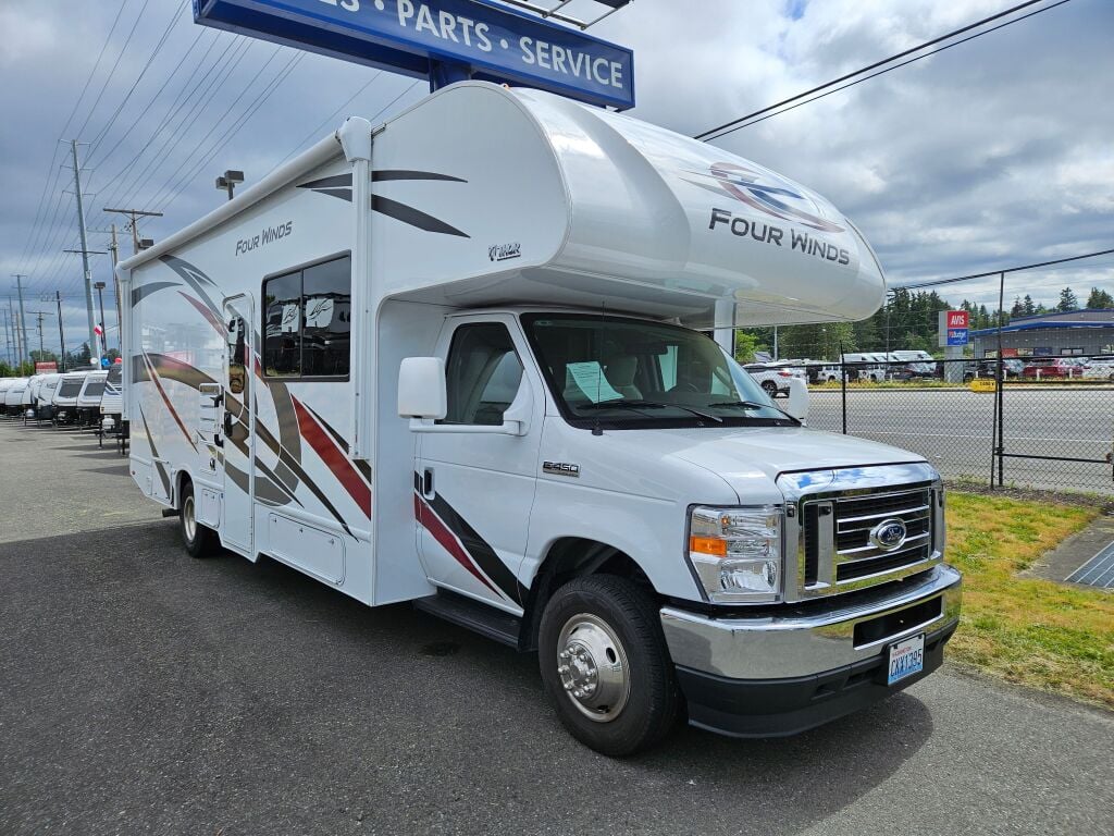 2023 Thor Motor Coach Four Winds for sale. If you are looking for the best way to travel across the country in style, and comfort, an RV is the best way to go. Take road trips anytime with the Four Winds. Set out across the country, visit landmarks, weekend Camping trips, travel around in style and comfort without the need for a hotel. It is loaded with features, options, and incredible comfort throughout. Contact us today for more details about this Thor Motor Coach Four Winds. As a family-owned, award-winning local RV dealer with multiple locations in Sumner, Everett, Kent, and Mt. Vernon, Washington, Poulsbo RV is dedicated to helping you find the perfect travel companion. Let our knowledgeable team assist you in selecting the ideal RV that best for you. Stock#: E5686A | 2023 Thor Motor Coach Four Winds