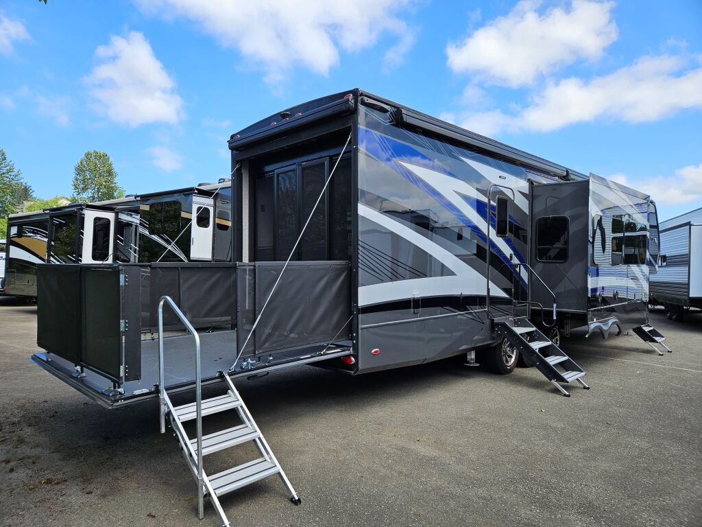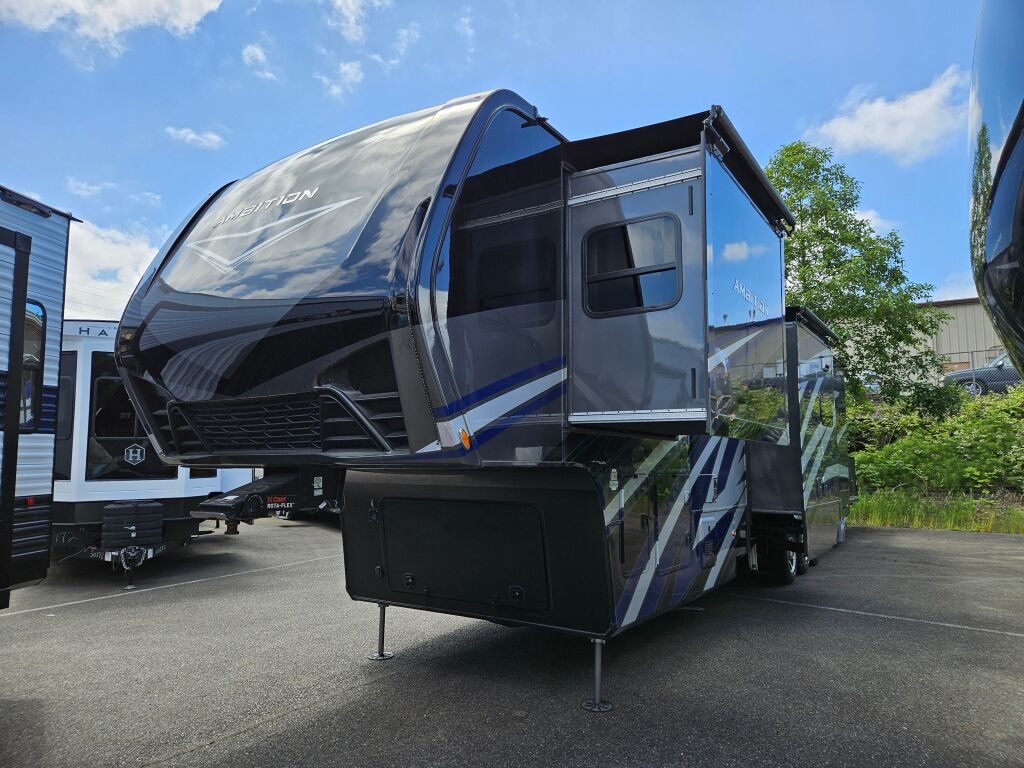 Introducing the remarkable 2023 Vanleigh Ambition 399TH, a new travel trailer that is designed for luxurious RVing experiences. Spanning an impressive length of 43 feet, this RV is perfect for families seeking comfort and adventure on the road. With a sleeping capacity of 7, it provides exceptional living space, ideal for accommodating family and friends during your travels. Featuring 3 slide-outs, this model enhances the interior layout, creating a more open and inviting atmosphere. The front and rear power leveling jacks guarantee convenience and stability wherever you choose to stop. Giving your outdoor lifestyle an edge, this unit comes with 2 awnings, providing shade and a comfortable area to unwind. The absence of a traditional bunkhouse does not detract from its utilization; rather, it enhances the living area for more versatile use. At a dry weight of 16,900 pounds and a gross vehicle weight rating of 21,000 pounds, this RV strikes an ideal balance for towing ease and full functionality. Notably, it also includes a hitch weight of 3,500 pounds to ensure a secure attachment to your vehicle. Enjoy the journey with all the comforts of home in the Vanleigh Ambition 399TH. As a family-owned, award-winning local RV dealer with multiple locations in Sumner, Everett, Kent, and Mt. Vernon Washington, Poulsbo RV is here to help you find the perfect RV. Stock#: K5804, VIN: 7HHAC4336PV230125.