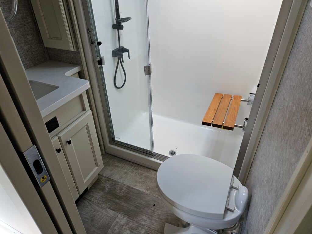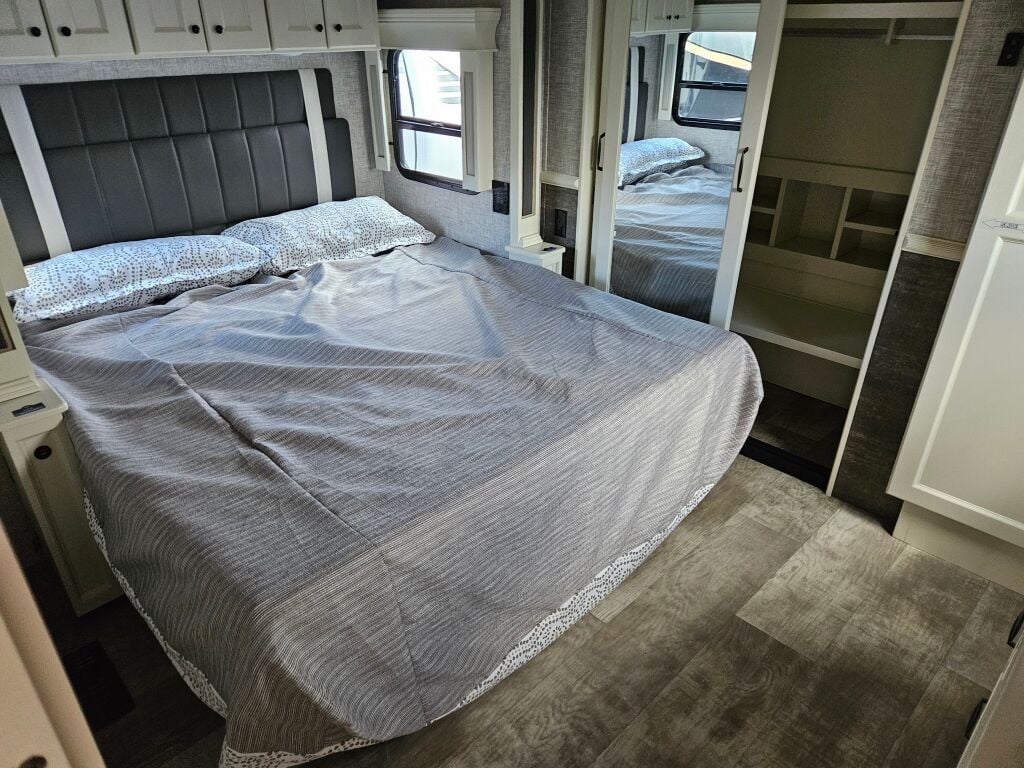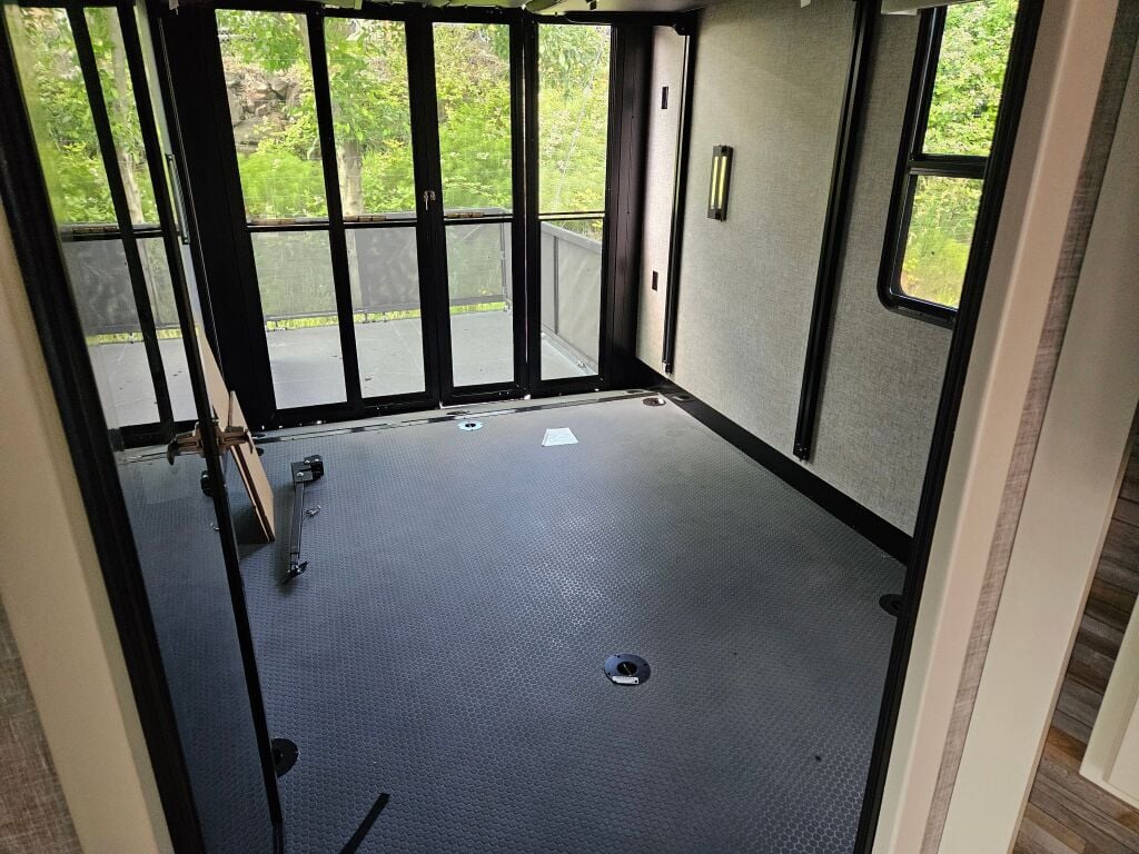 Additional Features And Information. 1000 Watt Pure Sine Wave Inverter, 50″ Led TV Living Area, 32″ LED TV Bedroom, 32″ Outdoor TV, Electric Awning W/ Led Light Strip, 2nd Electric Awning W / Led Light Strip, Electric Power Cord Reel, Led Entry Light And Porch Light, Dual 15K Btu A/C’S, Universal Docking Stations, Recessed Led Ceiling Lighting, 20 Cu Ft. Whirlpool Residential Refrigerator, Solar Prep, Six Point Leveling System, Pro Star Exterior Lighting, Ceiling Fan, Cool Gel Memory Foam Mattress, Convection Microwave, Dirt Devil Central Vac.