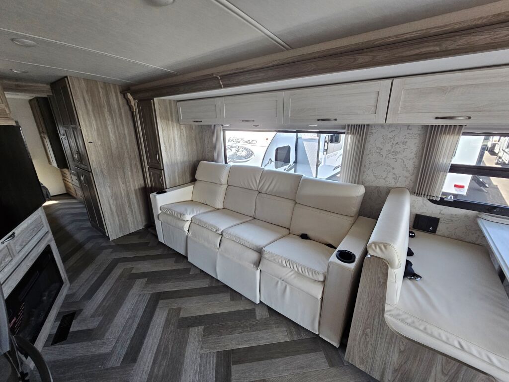 Introducing the 2023 Winnebago Adventurer 34W, a remarkable recreational vehicle designed for adventure seekers and families alike. This new RV measures an impressive 35.43 feet, providing ample space for relaxation and comfort while on your travels. With a sleeping capacity of six, it is perfect for family trips or outings with friends, allowing everyone to have their own space at night. Equipped with two slide-outs, the living area expands at the touch of a button, creating an inviting environment where you can gather and enjoy quality time together. The front and rear power leveling jacks make setting up your campsite a breeze, allowing you to focus more on enjoying your experience. This Winnebago runs on gas and has a Gross Vehicle Weight Rating of 22,000 pounds, ensuring it can handle the demands of the road. It also boasts a towing capacity of 5,000.08 pounds, making it a versatile choice for those who wish to bring along additional gear or a vehicle. The elegant design features a single awning that offers shade and comfort during your outdoor adventures. As a family-owned, award-winning local RV dealer with multiple locations in Sumner, Everett, Kent, and Mt. Vernon Washington, Poulsbo RV is here to help you find the perfect RV. Stock#: K5858, VIN: 1F66F5DN9N0A14422.