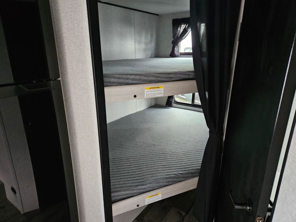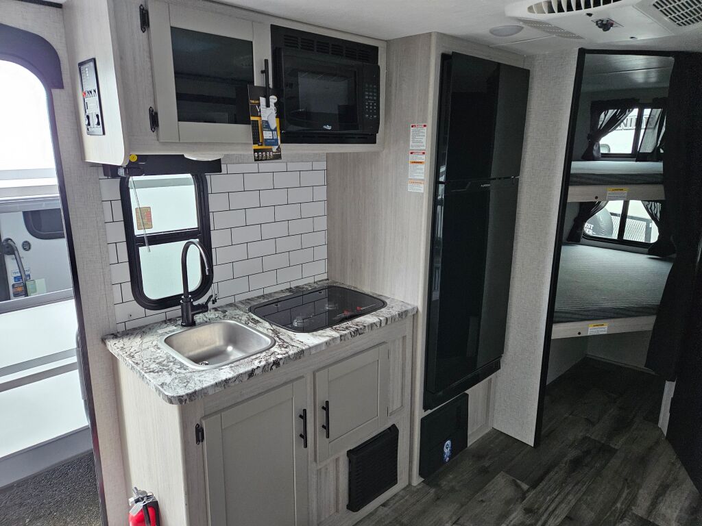 Introducing the 2024 Crossroads Sunset Trail Super Lite SS188BH, a remarkable travel trailer designed for adventurous families seeking comfort and convenience on the road. This new RV boasts a manageable length of 22.64 feet, making it an excellent choice for those who want to explore without sacrificing living space. With a dry weight of 3,846 pounds and a GVWR of 4,874 pounds, it is lightweight enough for easy towing while still providing ample room for everyone to enjoy their journey. The RV can comfortably accommodate up to eight people, making it a perfect fit for family outings and getaways with friends. The layout includes one slide-out, expanding the living area and offering a bright, open feel. You will appreciate the flexibility of the space and the convenience of the front and rear power leveling jacks, which ensure easy setup at any campsite. For those cozy nights in, the RV features a designated bunkhouse, allowing children and guests to have their own sleeping quarters. This design emphasizes the importance of creating lasting memories while enjoying the great outdoors. As a family-owned, award-winning local RV dealer with multiple locations in Sumner, Everett, Kent, and Mt. Vernon Washington, Poulsbo RV is here to help you find the perfect RV. Stock#: E5721, VIN: 4YDTSSH1XRS350573.