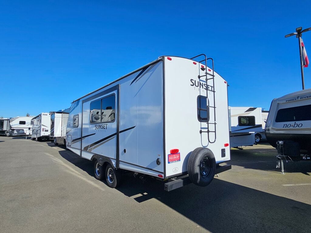Experience the open road with the 2024 CrossRoads Sunset Trail Super Lite SS212RB, a perfect companion for your RVing adventures. This new model is designed to provide comfort and convenience, making it an ideal choice for families or couples traveling together. With a length of 25.92 feet, it offers a spacious living area complete with a slide-out feature that expands your space when parked. It comfortably sleeps up to four people, allowing for restful nights after a day of exploration. The dry weight of 4889 pounds and a gross vehicle weight rating (GVWR) of 7510 pounds ensure that this trailer is both lightweight and robust. It also features a hitch weight of 518 pounds for easier towing. For those who appreciate thoughtful amenities, the Sunset Trail SS212RB comes equipped with front and rear power leveling jacks, making set-up a breeze. One awning enhances your outdoor living area, providing shade and comfort while you enjoy nature. As you embark on your travels, you will find this RV to be a reliable partner, housing practical features and a welcoming ambiance. As a family-owned, award-winning local RV dealer with multiple locations in Sumner, Everett, Kent, and Mt. Vernon Washington, Poulsbo RV is here to help you find the perfect RV. Stock#: F1245, VIN: 4YDTSSK25RS350658.