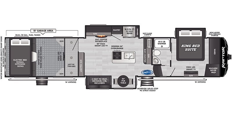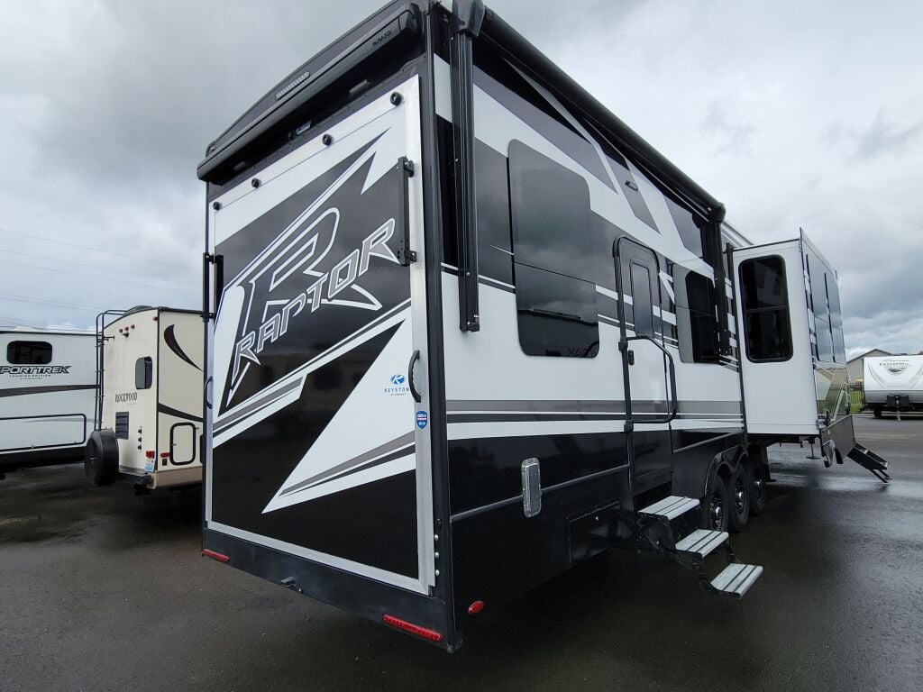 2024 Keystone Raptor 428 for sale. If you are looking for the best way to travel across the country in style, and comfort, an RV is the best way to go. Take road trips anytime with the Raptor. Set out across the country, visit landmarks, weekend camping trips, travel around in style and comfort without the need for a hotel. It is loaded with features, options, and incredible comfort throughout.