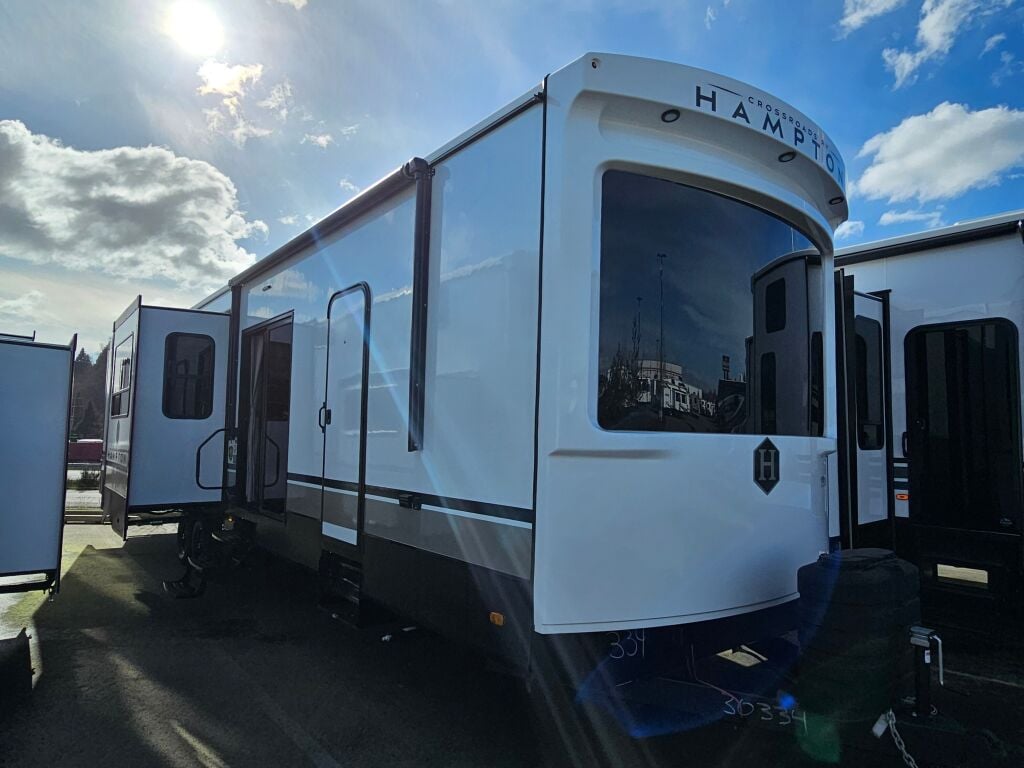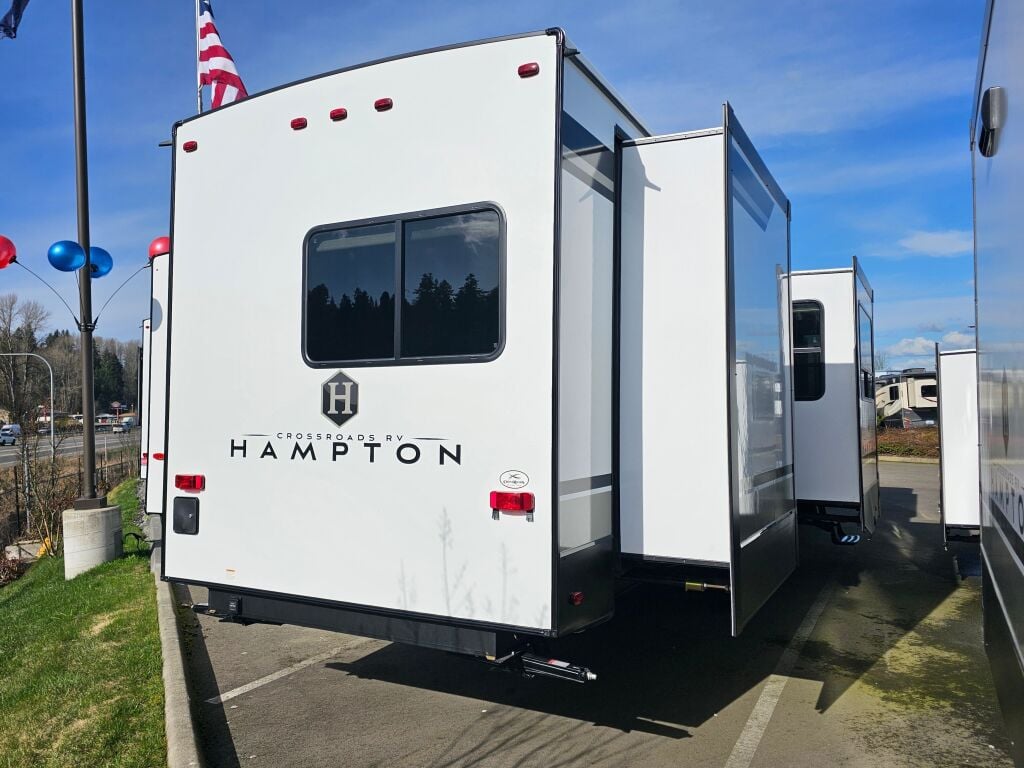 Introducing the remarkable 2025 Crossroads Hampton HP380RKS, an ideal companion for your RV adventures. Measuring an impressive 41.99 feet in length, this luxurious RV provides ample living space, designed to accommodate up to four individuals in comfort. The new condition ensures that you are stepping into a fresh and pristine environment, perfect for creating unforgettable memories on the road. Equipped with four slide-outs, this model expands your living area, providing a spacious layout that enhances relaxation and entertainment. The Hampton features a well-appointed interior, allowing you to experience the joys of RVing with all the conveniences of home. You will appreciate the front and rear power leveling jacks that make the setup process quick and easy, allowing you to enjoy your environment without unnecessary hassle. Its single awning adds to the outdoor experience, offering a shaded area for lounging outside. Additionally, with a dry weight of 11,427 pounds and a hitch weight of 1,704 pounds, towing is manageable for a range of vehicles. As a family-owned, award-winning local RV dealer with multiple locations in Sumner, Everett, Kent, and Mt. Vernon Washington, Poulsbo RV is here to help you find the perfect RV. Stock#: S760, VIN: 4YDTHPU23S9330334.