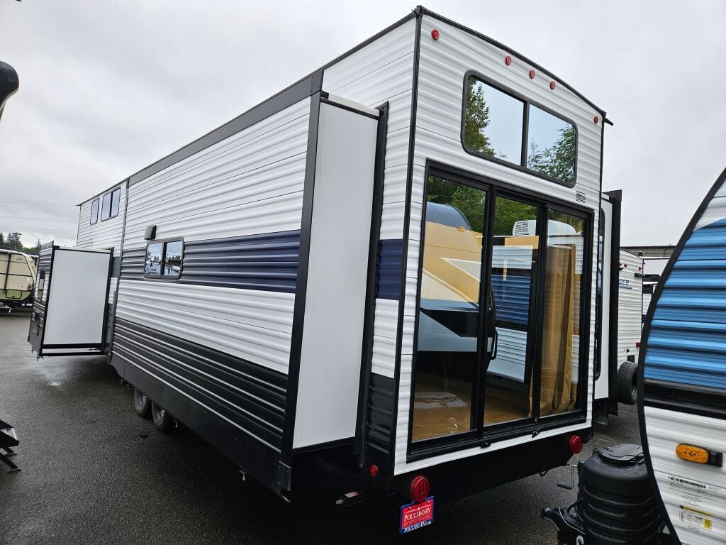 Introducing the 2025 Forest River Cascade 39JM, an exceptional travel trailer designed for families who enjoy the great outdoors. This RV measures an impressive 43.31 feet in length and has a dry weight of 12,589 pounds, making it spacious yet manageable for your adventures. With a gross vehicle weight rating of 13,465 pounds and a hitch weight of 1,465 pounds, you can feel secure knowing it is built for reliable use. The Cascade model perfectly balances comfort and functionality, offering a sleeping capacity of up to eight people. Its three slide outs significantly enhance the living area, allowing for ample space to relax after a day of exploration. You will appreciate the convenience of the front and rear manual leveling jacks, which ensure a stable setup at any campsite. Additionally, this RV comes equipped with an awning, perfect for creating a shaded outdoor gathering spot. The Cascade is a new model, which means it has never been used and is ready for its first journey. As a family-owned, award-winning local RV dealer with multiple locations in Sumner, Everett, Kent, and Mt. Vernon Washington, Poulsbo RV is here to help you find the perfect RV. Stock#: FCE537, VIN: 5ZT2CK4B7S1003464.