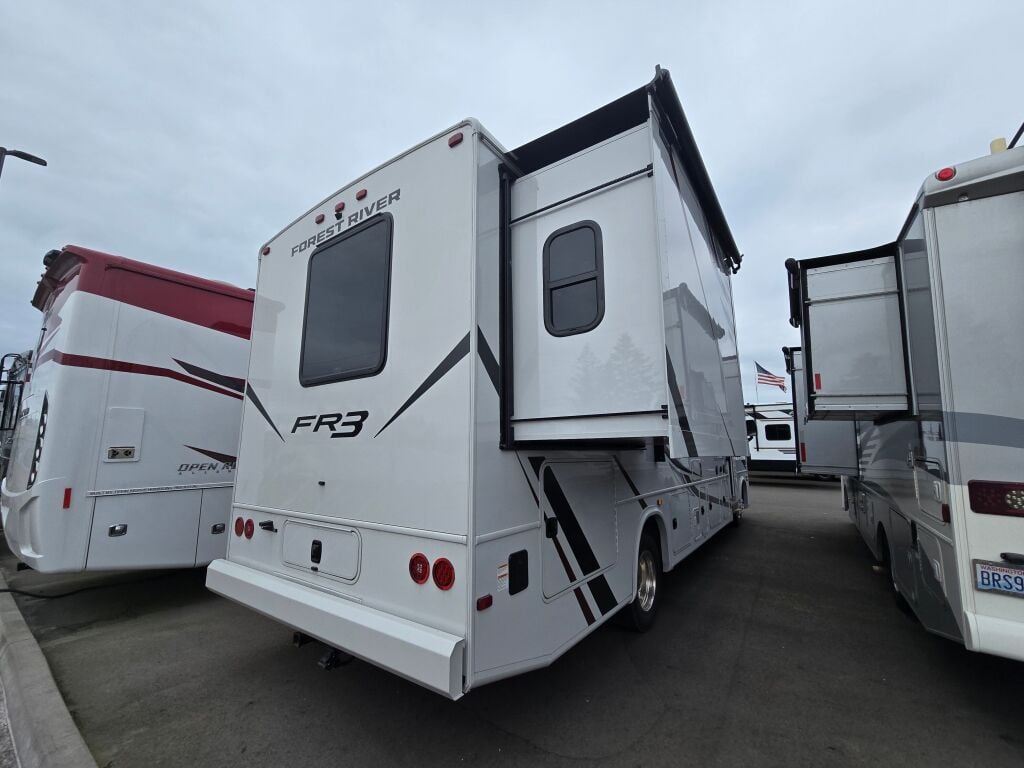 Introducing the 2025 Forest River FR3 30DS, a remarkable motorhome designed to enhance your RVing adventures. With a robust length of 31.82 feet, this new model offers a spacious and inviting living area that comfortably accommodates up to 7 travelers. Ideal for family trips or outings with friends, the FR3 30DS stands out with its clever design, featuring 2 slide-outs that significantly expand your interior space. Powered by a reliable gas engine, this motorhome supports a gross vehicle weight rating (GVWR) of 20,500 lbs, ensuring a solid and safe experience on the road. Notably, it includes a towing capacity of 5,000 lbs, granting you the freedom to bring along your favorite outdoor equipment or vehicle. The convenience of front and rear power leveling jacks makes parking and setup a breeze, allowing you to focus on enjoying your travels. Additionally, with one awning extending your living area to the outdoors, you can relish the beauty of nature while being sheltered from the elements. Rest assured with this versatile and innovative RV that is perfect for creating unforgettable memories. As a family-owned, award-winning local RV dealer with multiple locations in Sumner, Everett, Kent, and Mt. Vernon Washington, Poulsbo RV is here to help you find the perfect RV. Stock#: K6101, VIN: 1F66F5DN3R0A04426.