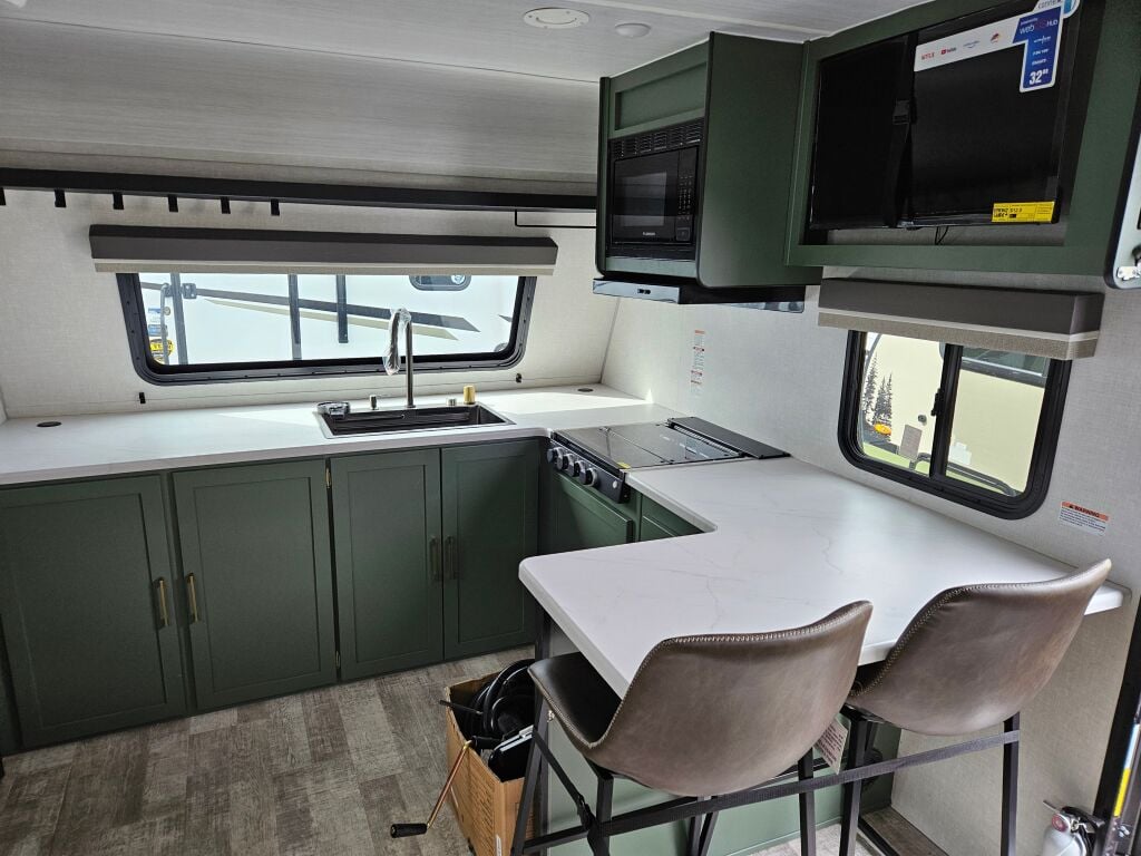 Introducing the 2025 Forest River No Boundaries NB20.5, an ideal companion for your next camping experience. This spacious RV measures 27.9 feet in length and is designed to comfortably accommodate up to four individuals, making it perfect for family getaways or outings with friends. With a dry weight of 6003 pounds and a gross vehicle weight rating of 7503 pounds, this new RV offers excellent stability while traveling. It features one slide-out that enhances the living area, creating a more spacious atmosphere for relaxation and leisure. The front and rear manual leveling jacks allow for easy setup at your chosen destination, ensuring that you can quickly get settled in and start enjoying your vacation. Equipped with one awning, the exterior provides shaded outdoor space, perfect for enjoying meals al fresco or unwinding while soaking up the scenery. The absence of a bunkhouse ensures a more open and versatile living space, allowing for comfortable movement and utilization of the RV. Additionally, the 810-pound hitch weight contributes to stable towing experiences. As a family-owned, award-winning local RV dealer with multiple locations in Sumner, Everett, Kent, and Mt. Vernon Washington, Poulsbo RV is here to help you find the perfect RV. Stock#: E5868, VIN: 5ZT2RPKB8SV026730.
