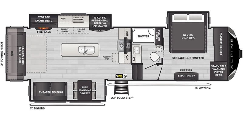 2025 Keystone Alpine 3011CK for sale. If you are looking for the best way to travel across the country in style, and comfort, an RV is the best way to go. Take road trips anytime with the Alpine. Set out across the country, visit landmarks, weekend camping trips, travel around in style and comfort without the need for a hotel. It is loaded with features, options, and incredible comfort throughout.