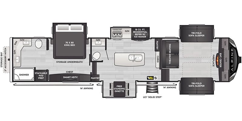 2025 Keystone Alpine 3700FL for sale. If you are looking for the best way to travel across the country in style, and comfort, an RV is the best way to go. Take road trips anytime with the Alpine. Set out across the country, visit landmarks, weekend camping trips, travel around in style and comfort without the need for a hotel. It is loaded with features, options, and incredible comfort throughout.