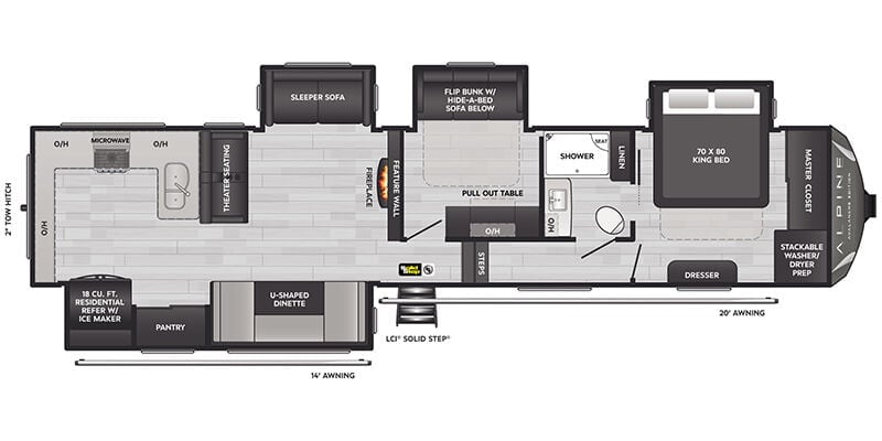 2025 Keystone Alpine Avalanche Edition 379MB for sale. If you are looking for the best way to travel across the country in style, and comfort, an RV is the best way to go. Take road trips anytime with the Alpine Avalanche Edition. Set out across the country, visit landmarks, weekend camping trips, travel around in style and comfort without the need for a hotel. It is loaded with features, options, and incredible comfort throughout.