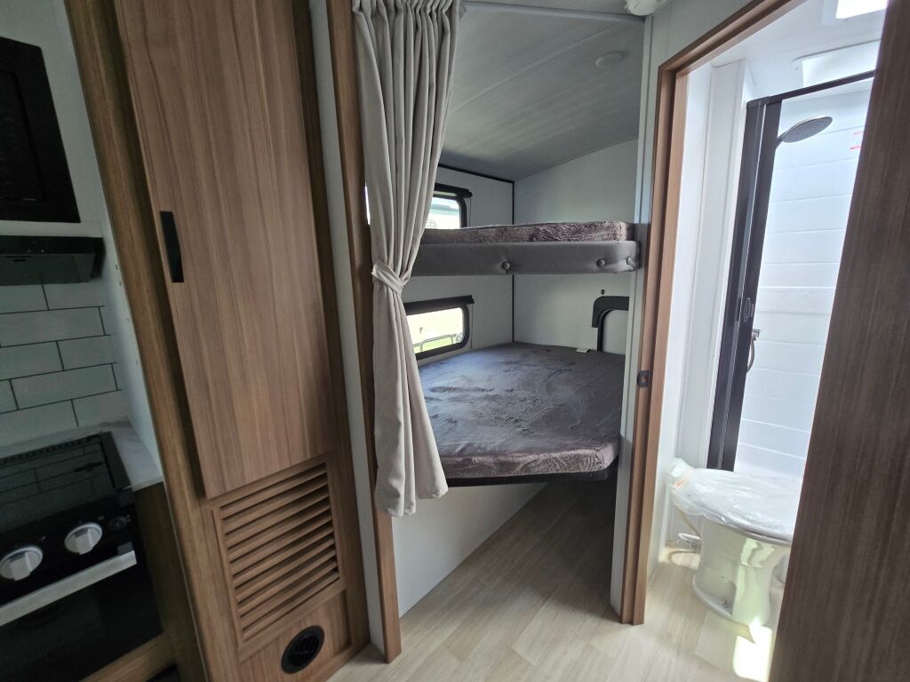 Introducing the all-new Keystone Passport 229BHWE, a remarkable travel trailer designed for families seeking adventure and comfort on the road. This 27-foot RV combines modern features with spacious living options, allowing you to experience the great outdoors without sacrificing the comforts of home. With a dry weight of 5,644 pounds and a hitch weight of 630 pounds, the Passport is light enough for easy towing while still providing ample space for up to 8 people to sleep comfortably. The unique bunkhouse layout is perfect for families, offering additional sleeping arrangements that cater to everyone. Featuring one slide-out, this trailer maximizes your living space, making it easy to enjoy indoor gatherings and meals. The front and rear power leveling jacks ensure a stable setup, allowing you to focus on enjoying your camping experience rather than wrestling with manual jacks. Additionally, the built-in interior speakers enhance your entertainment options, making movie nights under the stars an unforgettable experience. Whether you are venturing to the mountains, lakes, or somewhere in between, this new Keystone Passport ensures a travel experience that is convenient and stress-free. As a family-owned, award-winning local RV dealer with multiple locations in Sumner, Everett, Kent, and Mt. Vernon Washington, Poulsbo RV is here to help you find the perfect RV. Stock#: K6154, VIN: 4YDTPPK28SX412111.