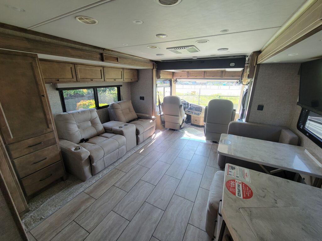 Introducing the 2025 Tiffin Motorhomes Byway 33FL, a remarkable new recreational vehicle designed for ample space and comfort during your travels. With an impressive length of 35.1 feet, this vehicle is ideal for families or groups, offering a cozy sleeping capacity for up to seven individuals. The versatile layout includes four slide-outs, which significantly enhance the living area when you are parked. Powered by a durable Cummins diesel engine, this RV is equipped to handle long trips with ease, delivering superior performance wherever your adventure takes you. The Byway 33FL also features a unique arrangement that eliminates the need for a bunkhouse, providing you with more living space for relaxation and enjoyment. This model comes with practical front and rear power leveling jacks, ensuring that you can easily stabilize your RV on various terrains. Additionally, the vehicle boasts a single awning for outdoor shade and comfort. With a gross vehicle weight rating of 29,801 pounds and a towing capacity of 5,000.08 pounds, this RV is perfect for bringing along extra gear or recreational toys. As a family-owned, award-winning local RV dealer with multiple locations in Sumner, Everett, Kent, and Mt. Vernon Washington, Poulsbo RV is here to help you find the perfect RV. Stock#: M3465, VIN: 4UZACJFC6SCVV3333.