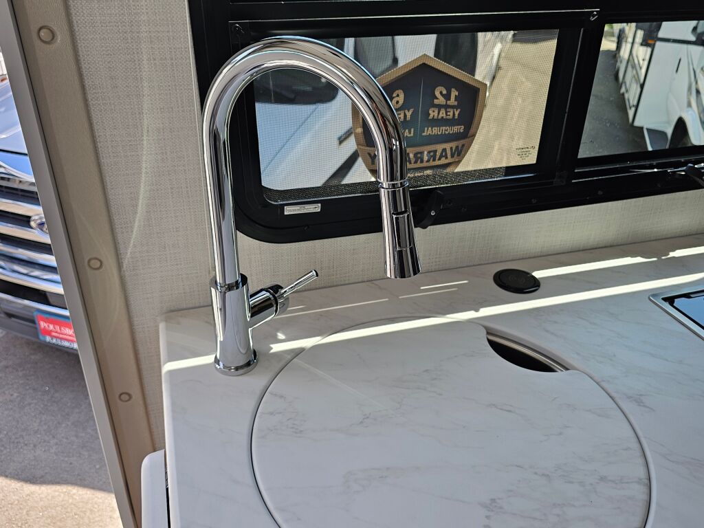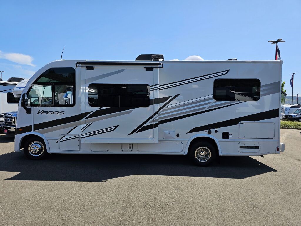 Explore the open road with the 2026 Thor Motor Coach Vegas 24.1, a perfectly sized motorhome designed for those who appreciate the comforts of home while traveling. This new RV boasts a length of 25.59 feet, making it an ideal companion for weekend getaways or extended road trips. With a sleeping capacity for five people, it ensures that everyone can enjoy cozy resting spaces after a fun-filled day of exploration. Within this remarkable RV, you will find features that enhance your traveling experience, such as a slide-out that expands your living area, providing added comfort and flexibility. The interior is equipped with speakers to deliver good quality sound for those evenings spent relaxing in style. Fuel your adventures with its reliable gas engine that supports a towing capacity of 8000 pounds, accommodating all your extra gear without a hitch. Weighing in at a gross vehicle weight rating of 12500 pounds and featuring a hitch weight of 8000 pounds, your journeys will be stable and uneventful. Although this model does not come with an exterior speaker system, the interior setup is designed for entertainment and relaxation. As a family-owned, award-winning local RV dealer with multiple locations in Sumner, Everett, Kent, and Mt. Vernon Washington, Poulsbo RV is here to help you find the perfect RV. Stock#: S811, VIN: 1FC3E3KN8TDD02304.