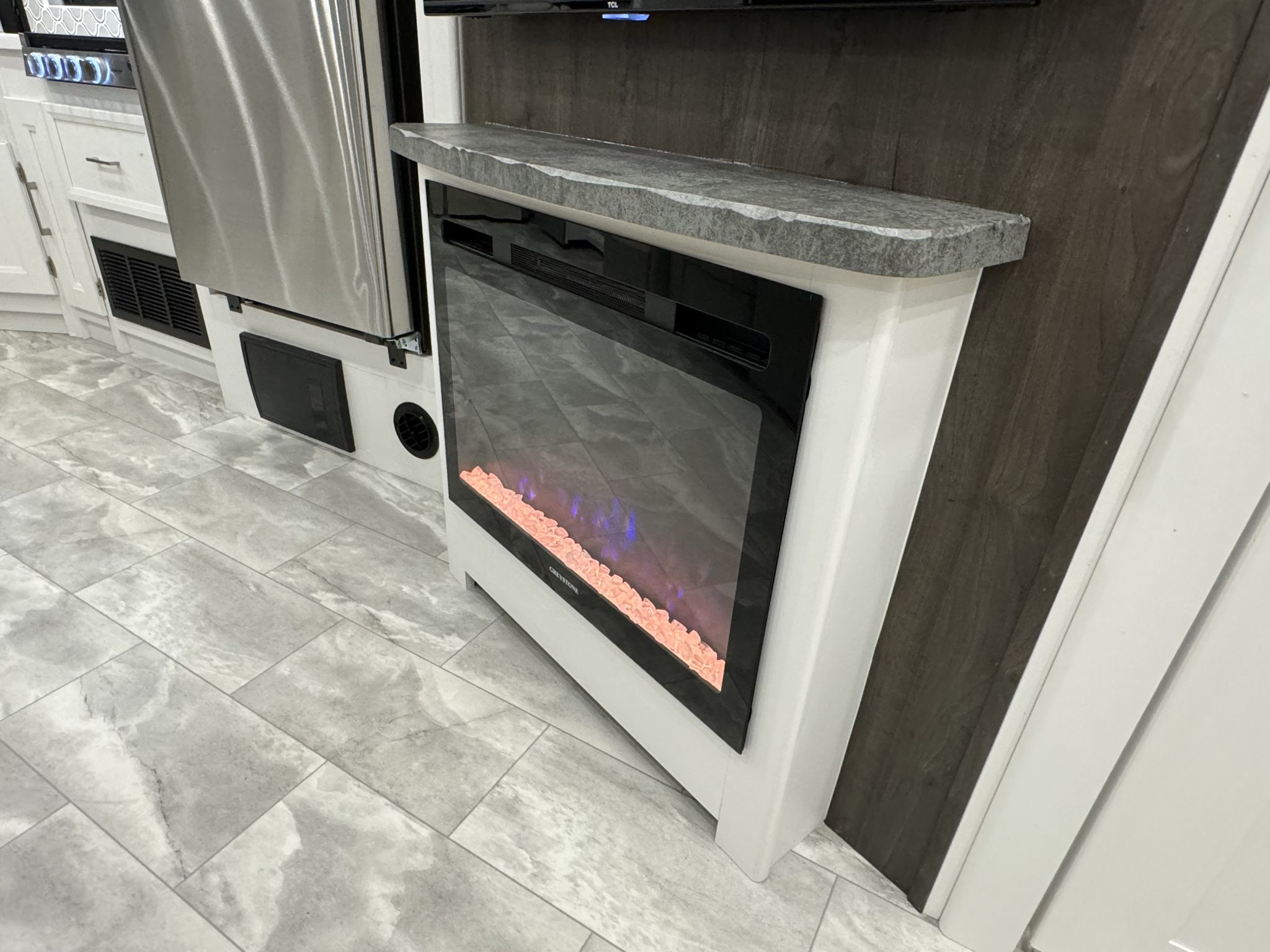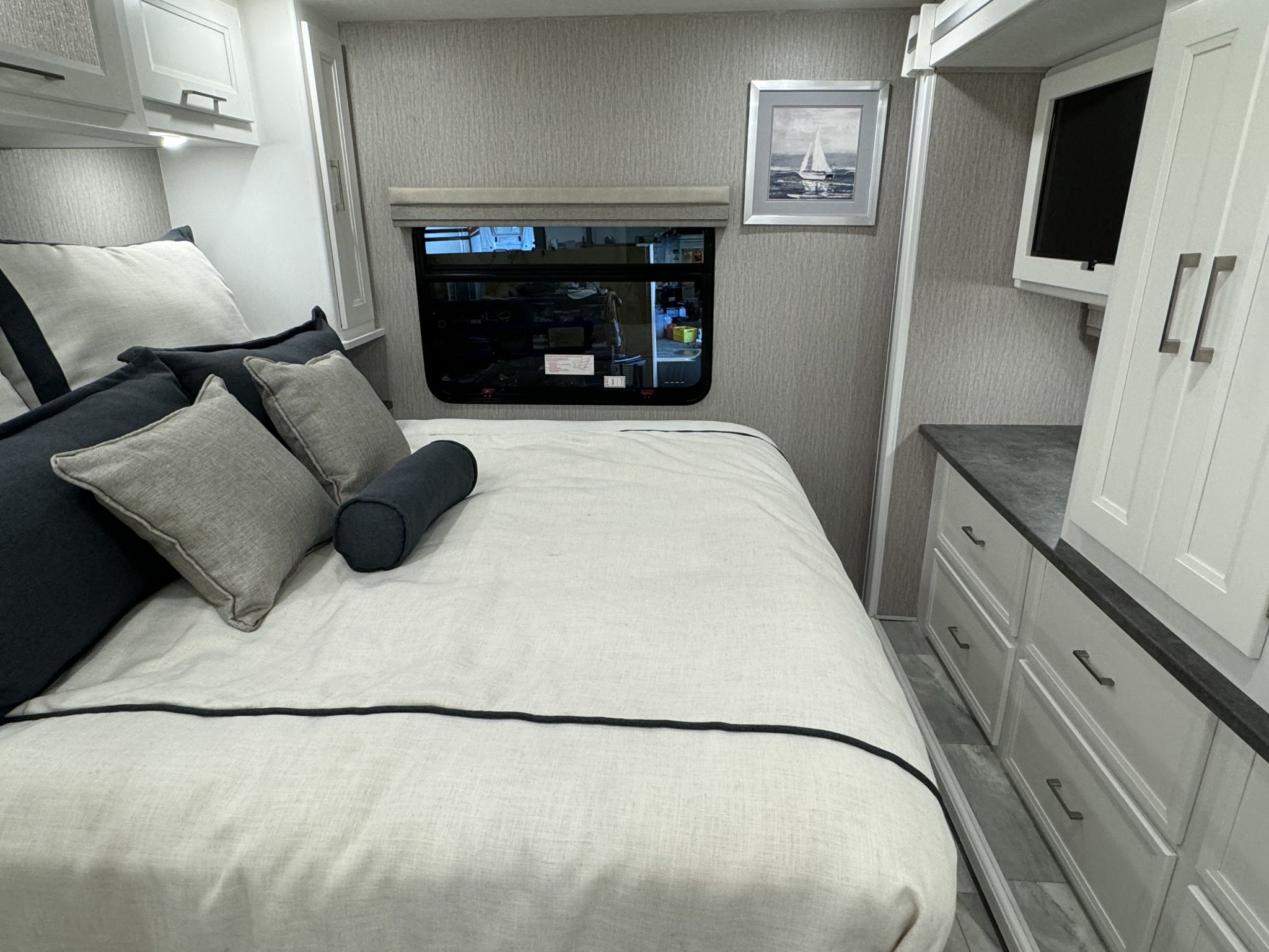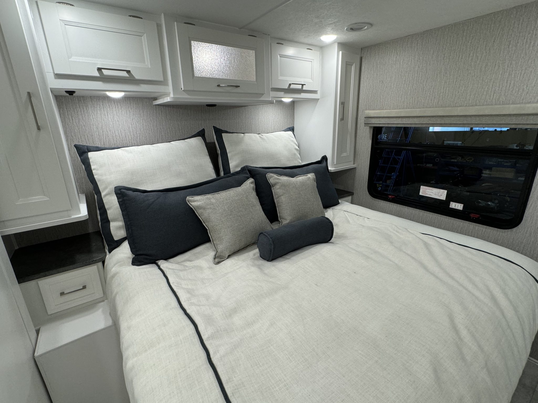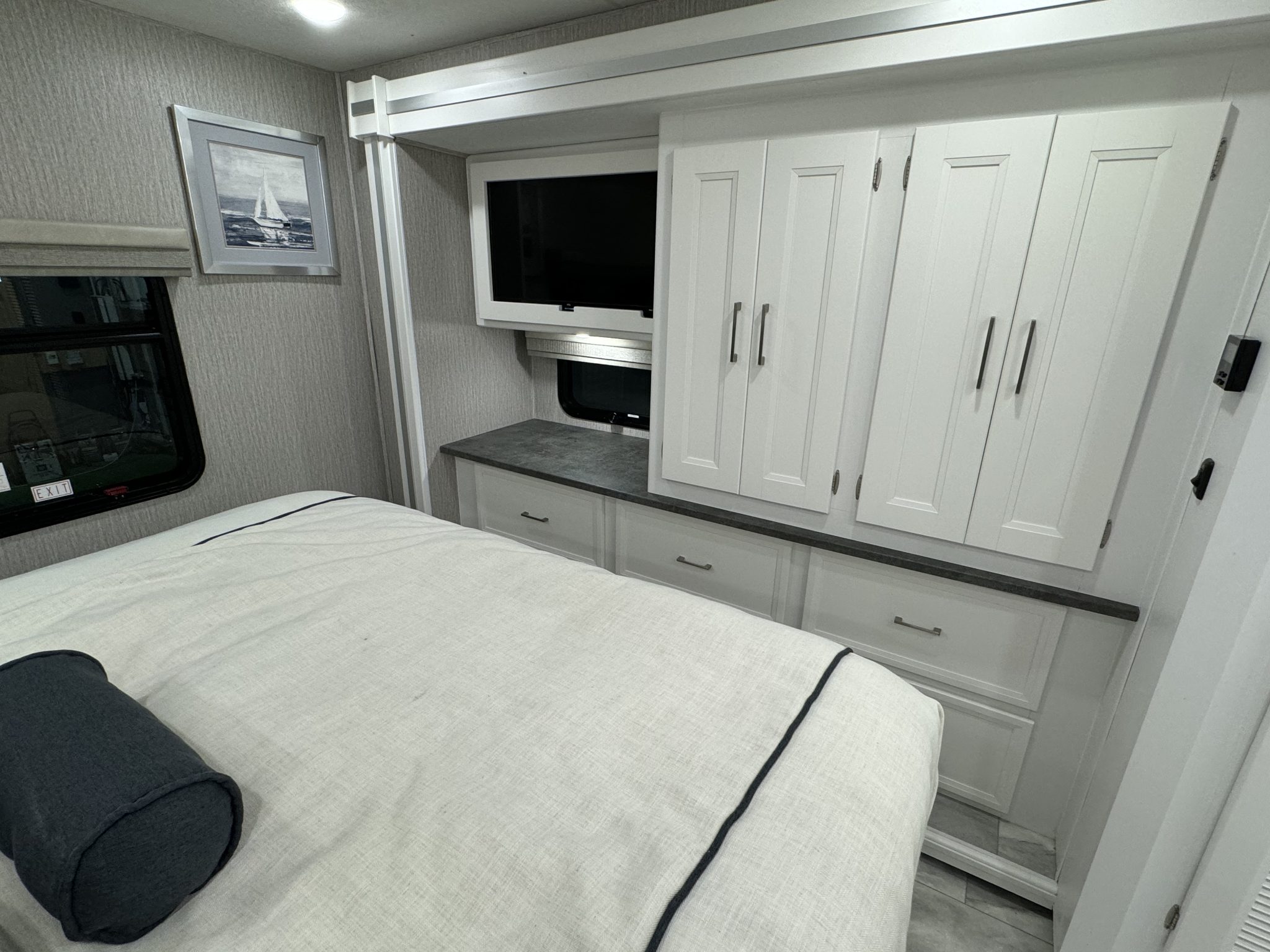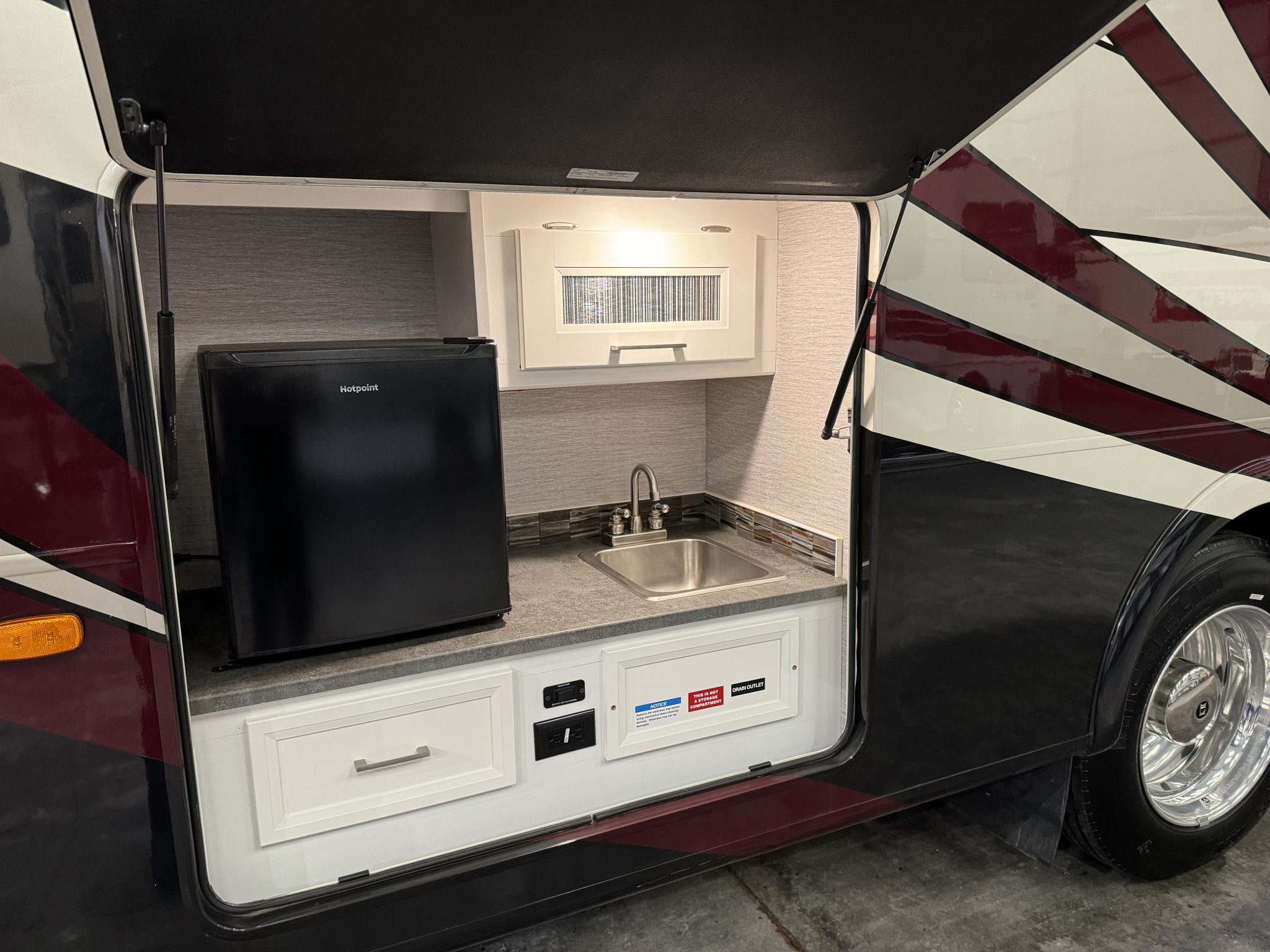 Here we have a beautiful as new Coachmen Encore 325SS with Caymus Full Body Paint, White Velvet Interior Wood Color, Powel Interior Decor, Full Wall slide-out, solar panels, illuminated awnings – 1 x 15′ and 1 x 10′, outside kitchen with fridge, outside TV, full-size domestic fridge freezer in the inside kitchen, washing machine & tumble dryer, rear fixed super-king size bed. drop down over-cab bunk bed, dinette also converts into a bed, Reclining/massaging cinema seating. Full size shower and porcelain toilet. Converted to run on LPG dual fuel. Alcoa Alloy Wheels with 255 x 22.5 Michelin tyres. Just 2,500 miles only! Available to view at our Somerset showroom.