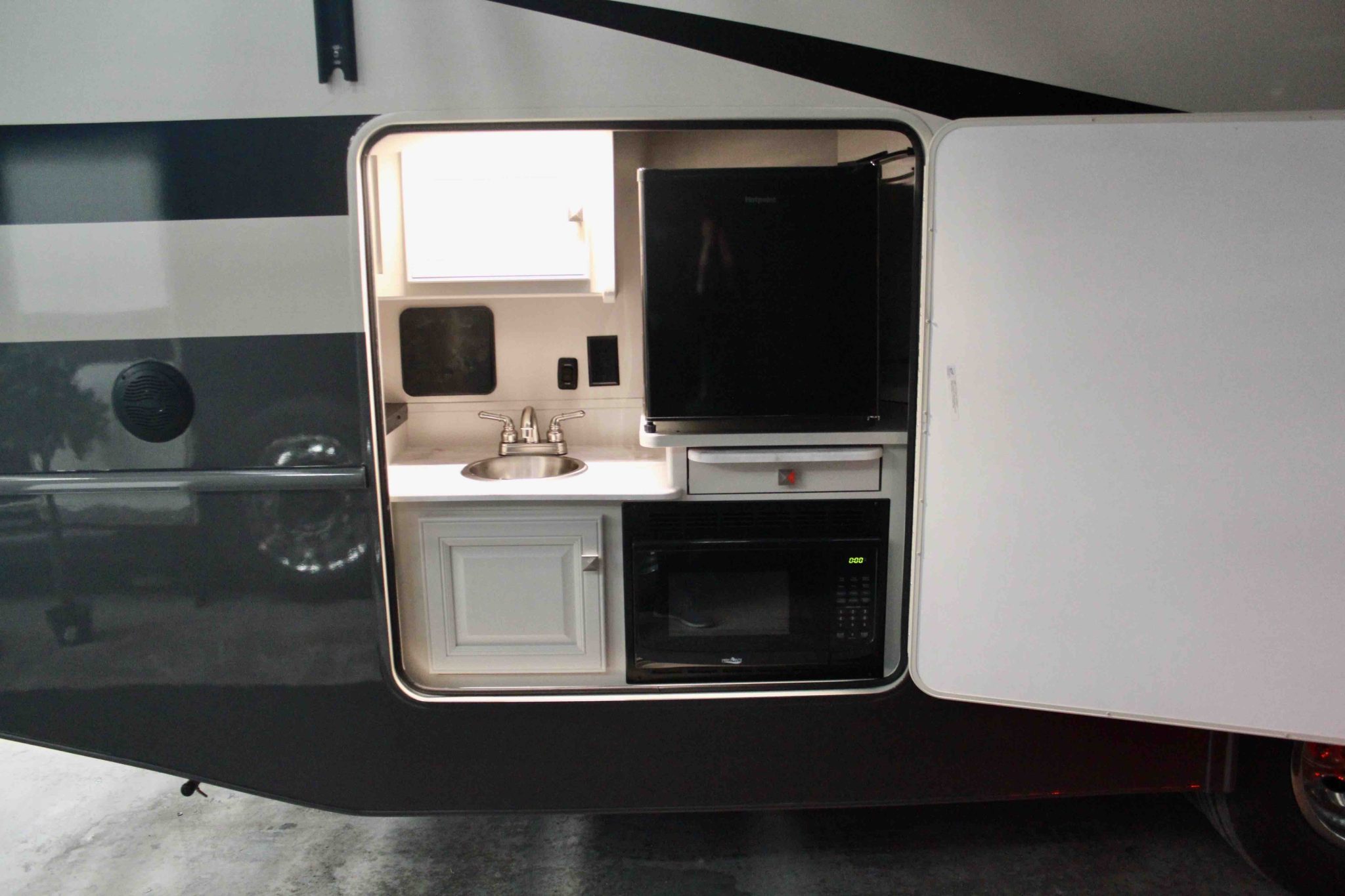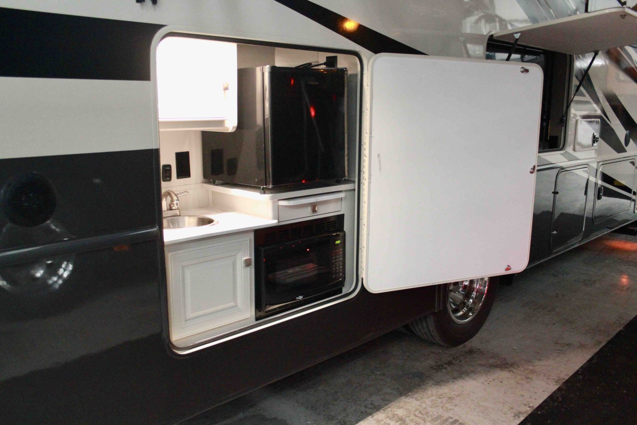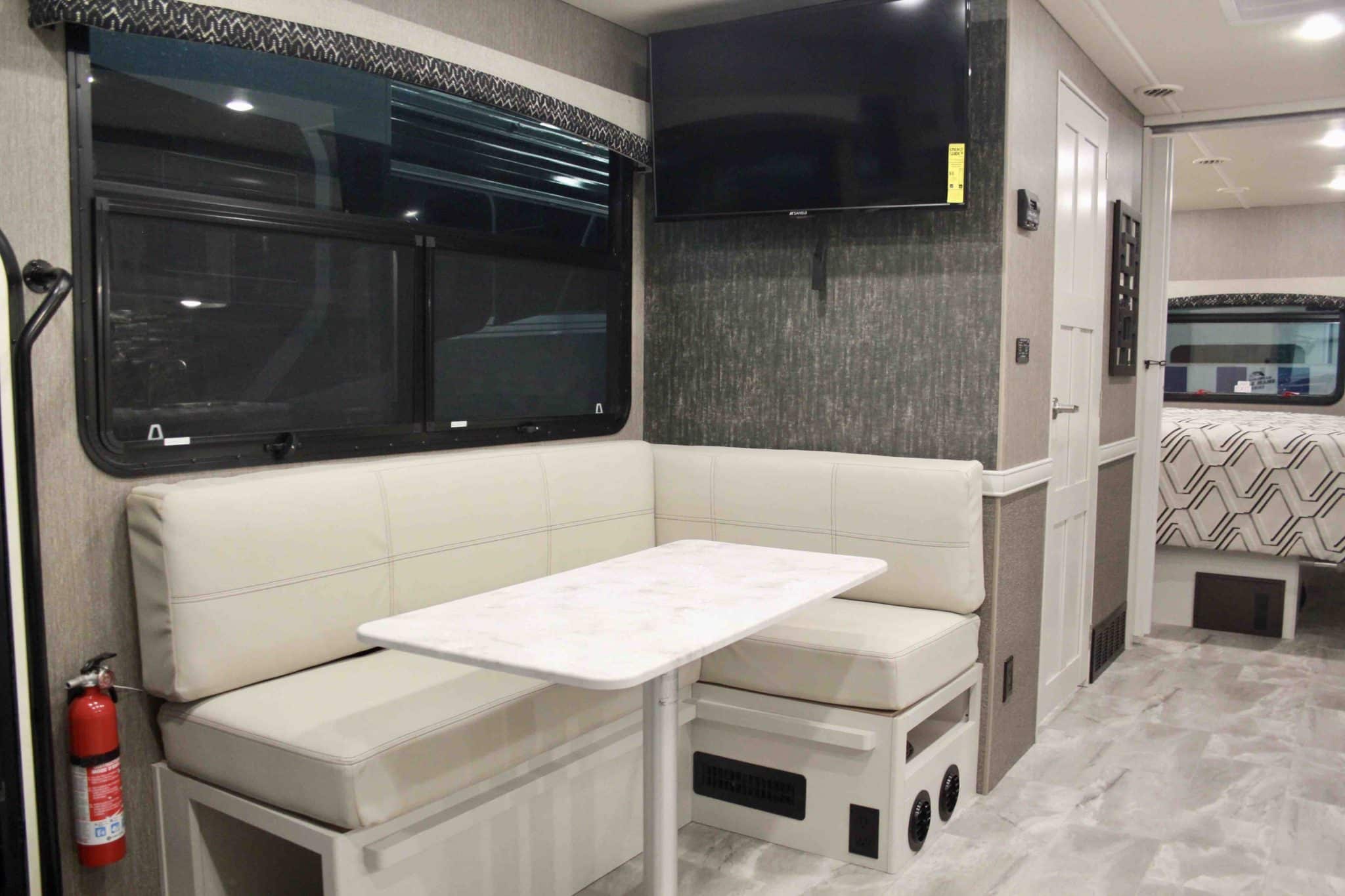 With exterior comforts like kitchens and TVs, the fun doesn’t need to be contained to inside the home. And that’s a good thing, because Flair is designed for large groups. All floorplans can easily sleep six, and some can even fit eight. There’s even a floorplan that includes two full bathrooms.
