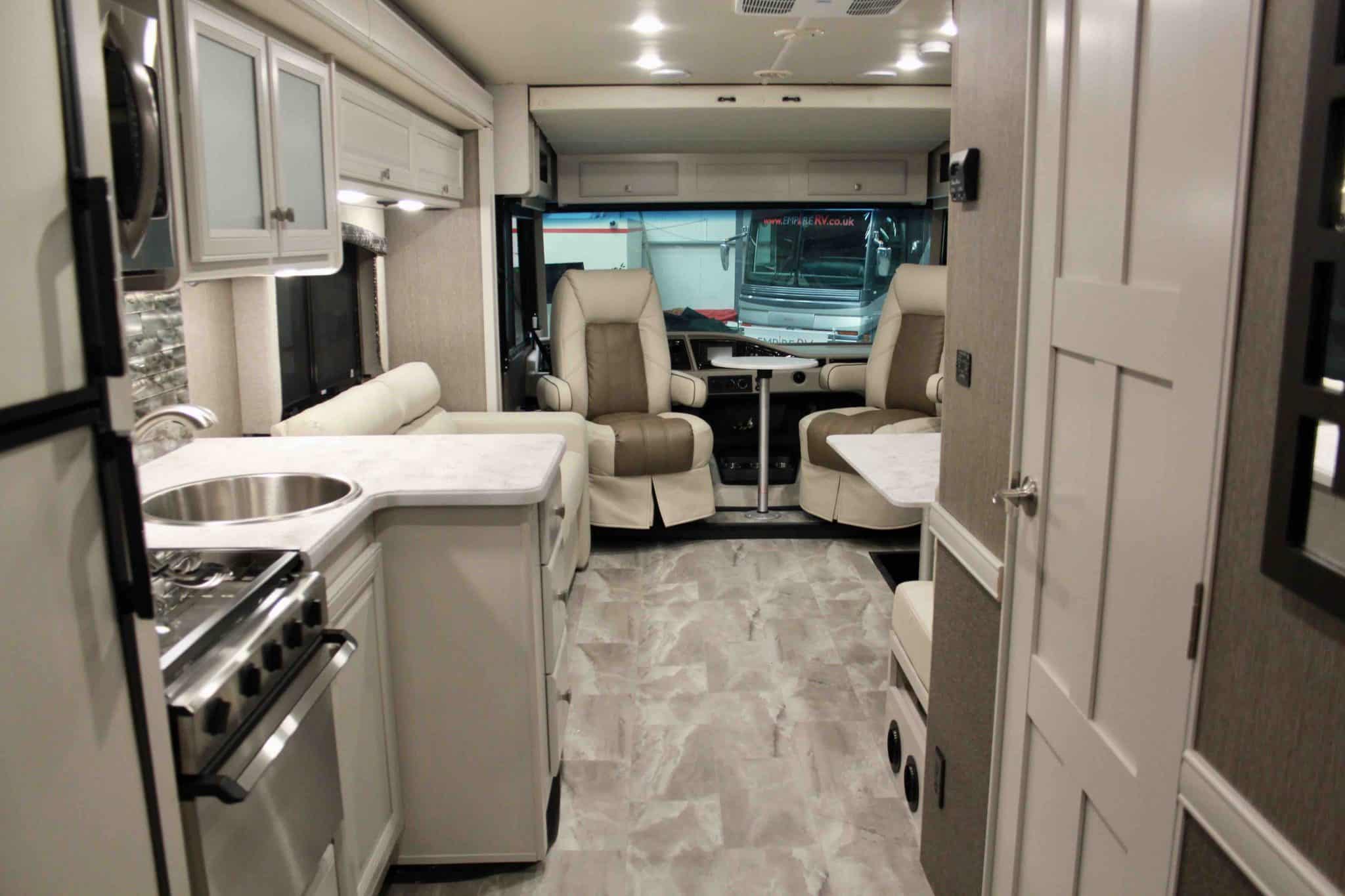 In Flair, there’s no sight that’s more inviting than the open road. That’s because we’ve taken everything you’ll need on your adventure and included it in this well-thought-out package. The new, larger 7.3 liter 350HP engine will carry you no matter what you have to tow. And with the new all-electronic instrument panel and digital dash, driving your RV becomes even more of a joy.