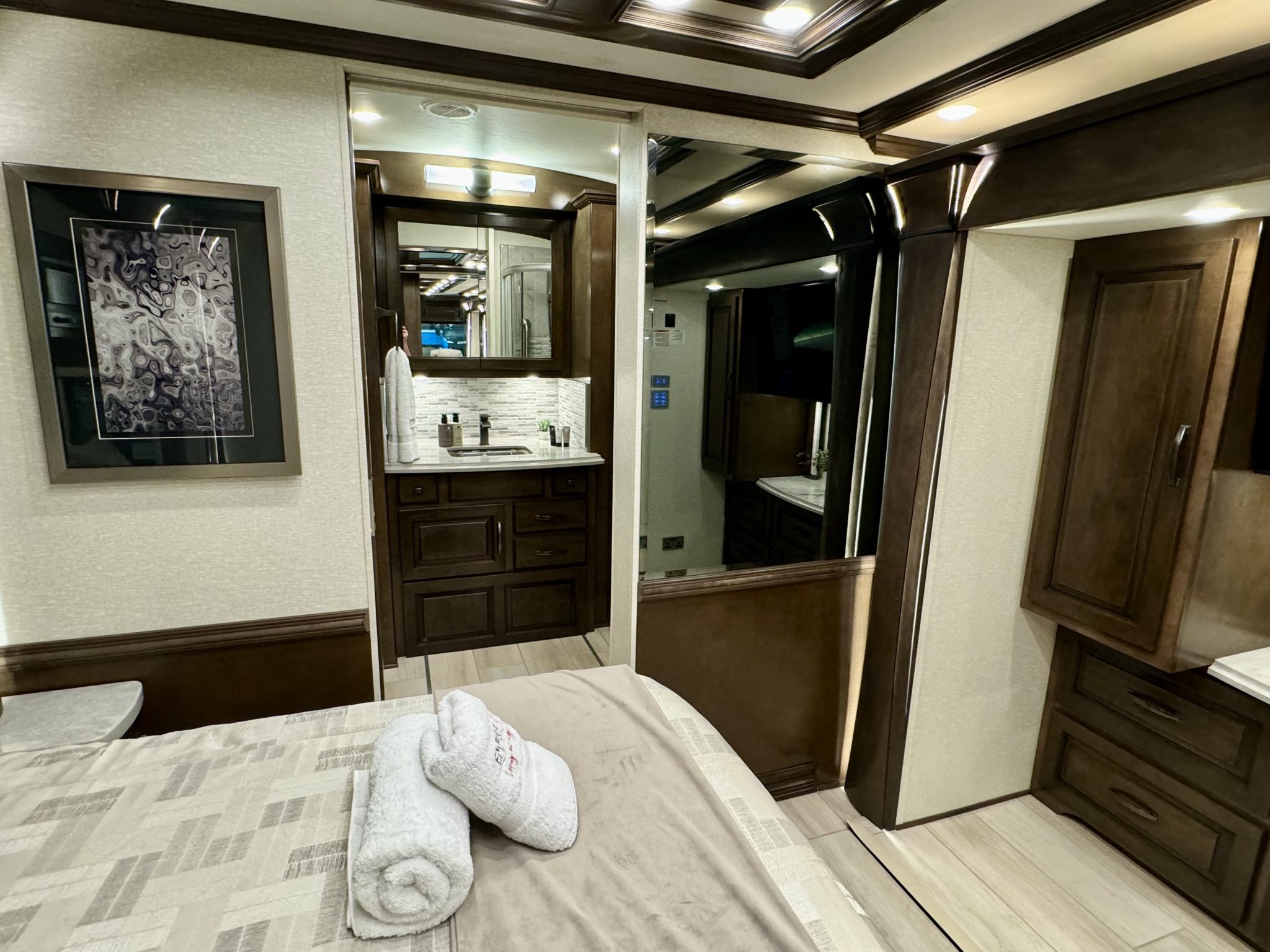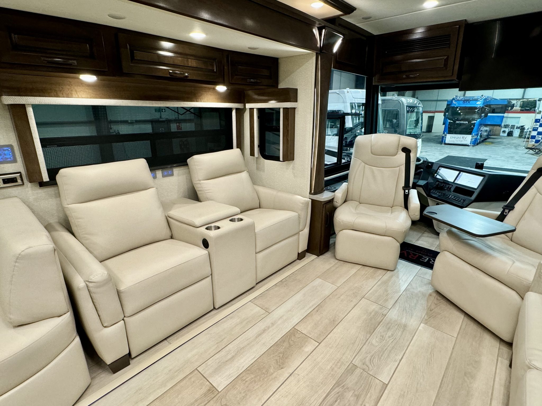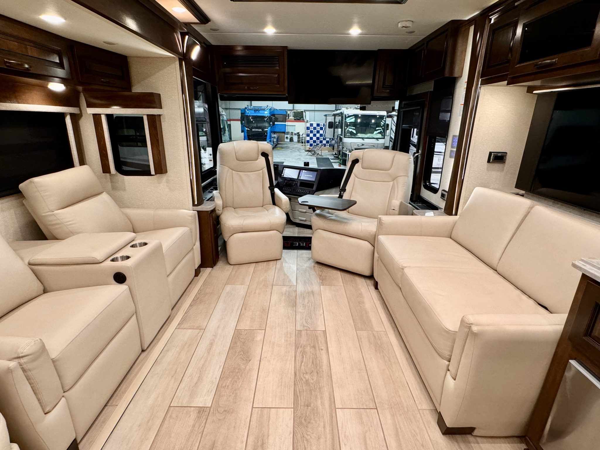 - Multiplex Monitor System 10.1” in Center of Coach with Interior Lighting & HVAC Controls