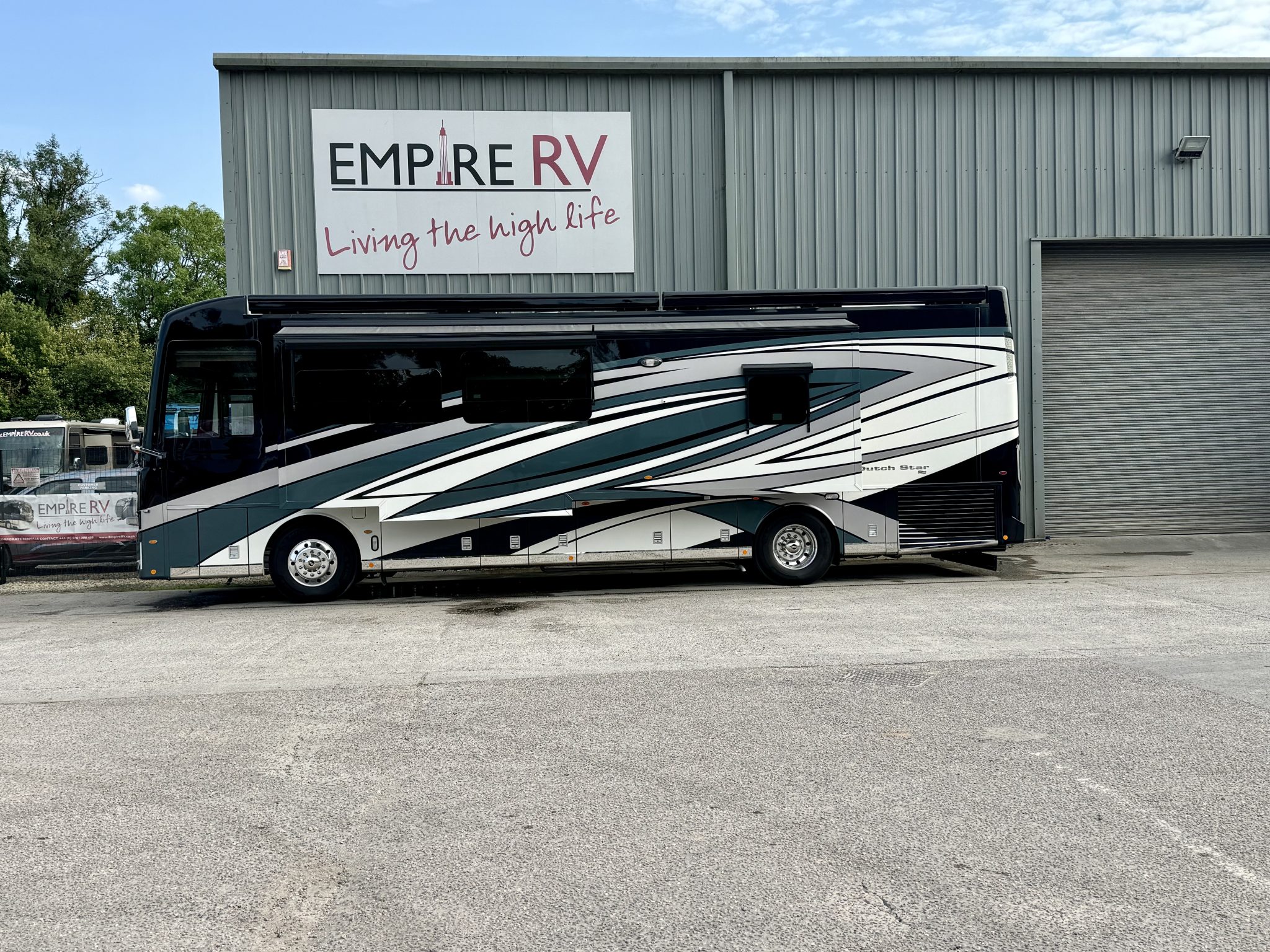 This luxurious and spacious Dutch Star Class A diesel motorhome is perfect for your family of six. The full rear bath features a cathedral ceiling with added height you are sure to appreciate, and the mid-coach half bath is great for your guests. The full-wall slide plus two additional slides provide ample interior space so that the kids can play with the dog on the floor. Whether you’re dining at the hide-a-leaf dinette, taking a rest on the queen bed slide, or enjoying some fresh air under the power awning with LED lights, you will fall in love with this home-on-wheels!