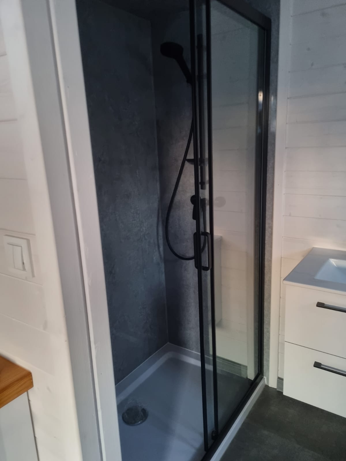 • Modern shower with sliding door