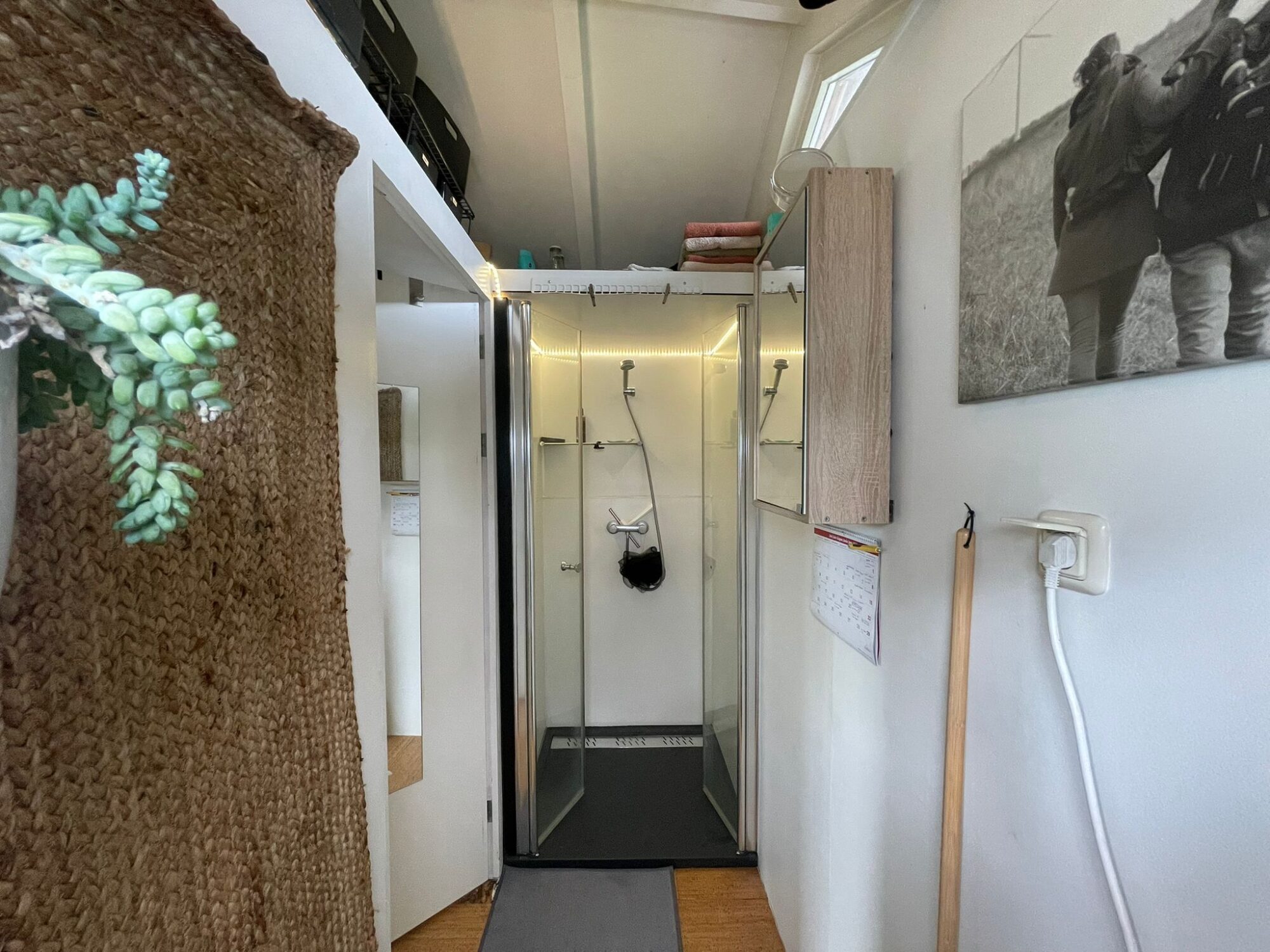 Shower: Trespa-finished with water-saving showerhead