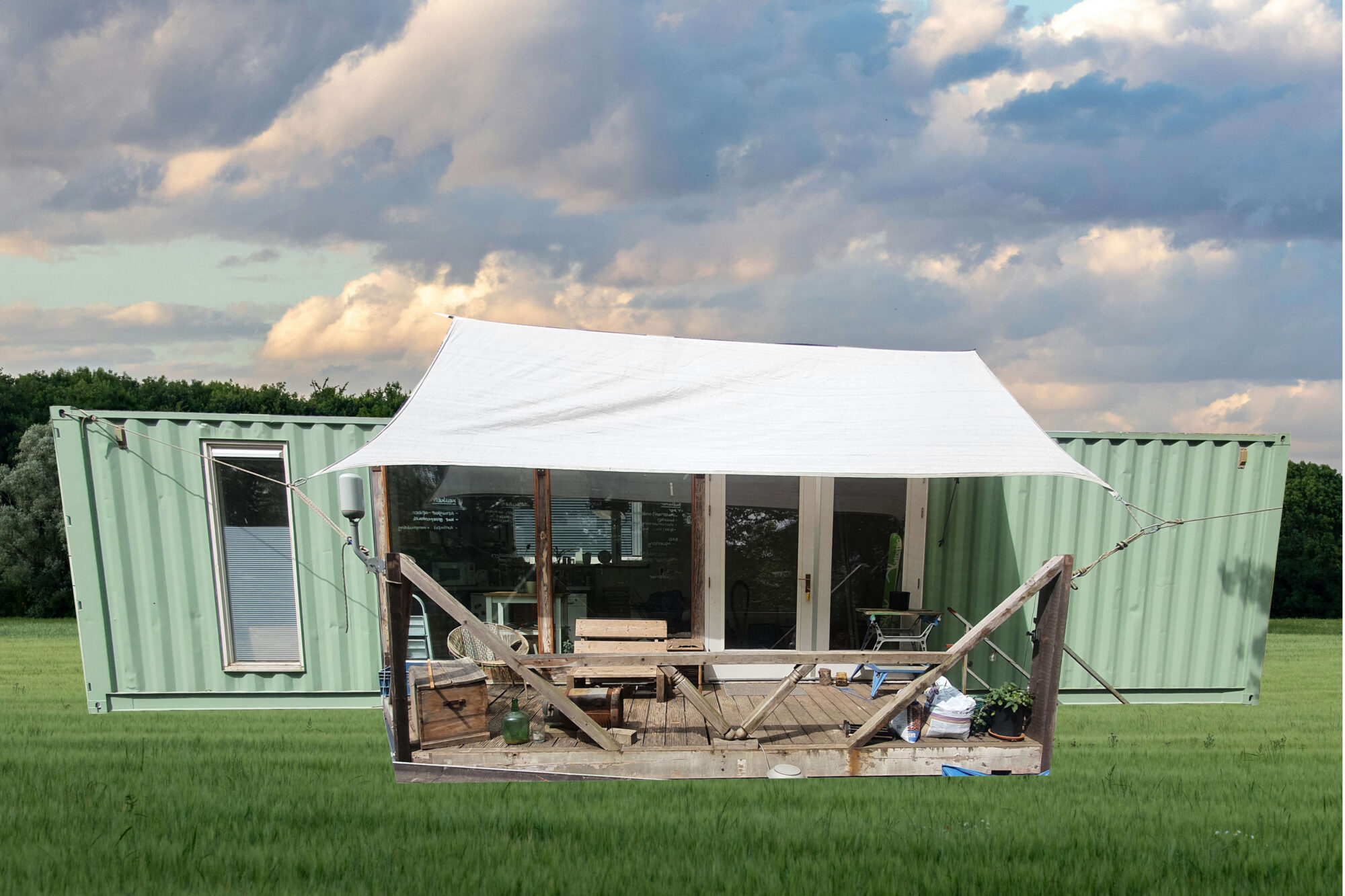 • Structure: Converted shipping container with corten steel exterior