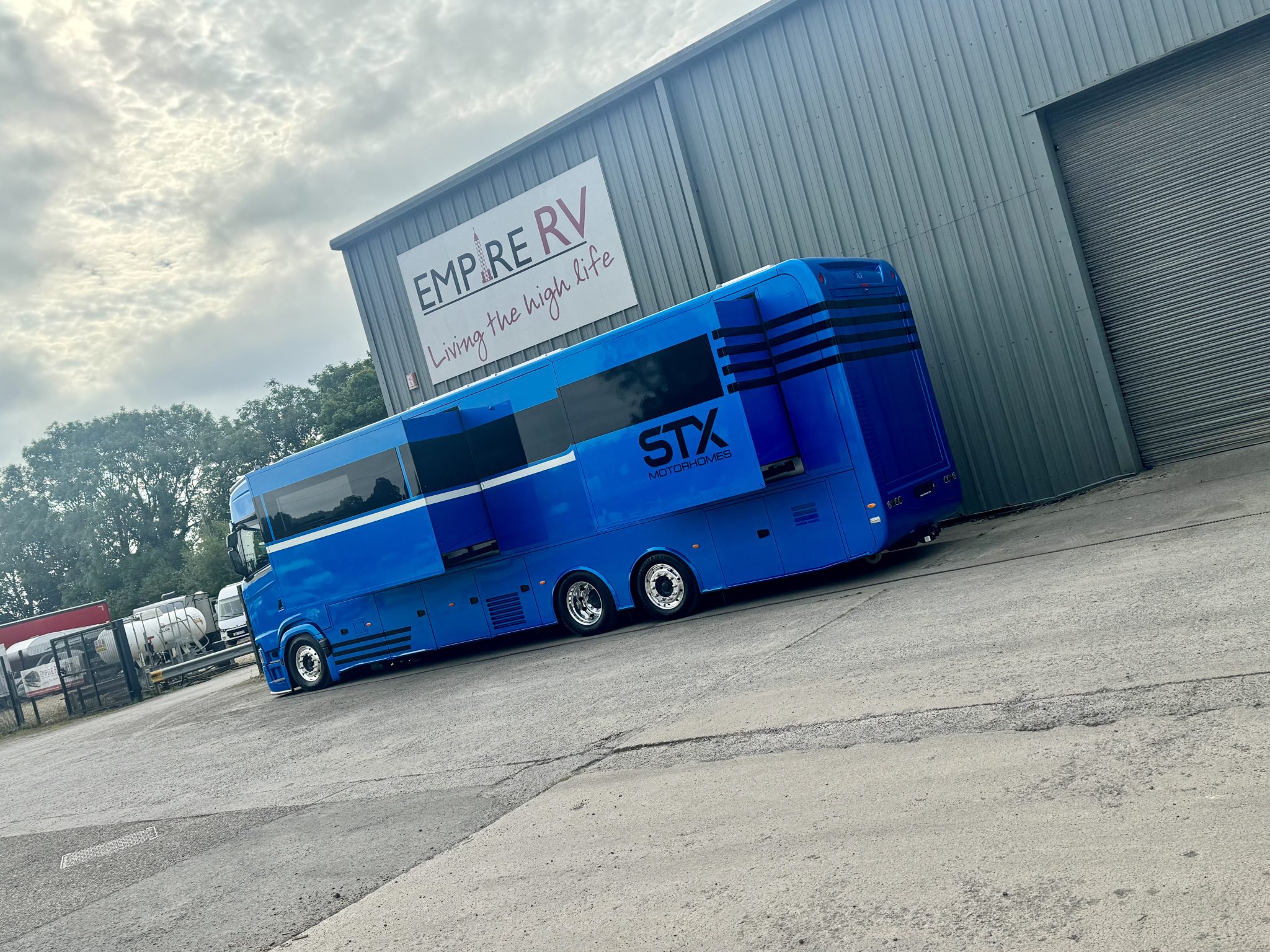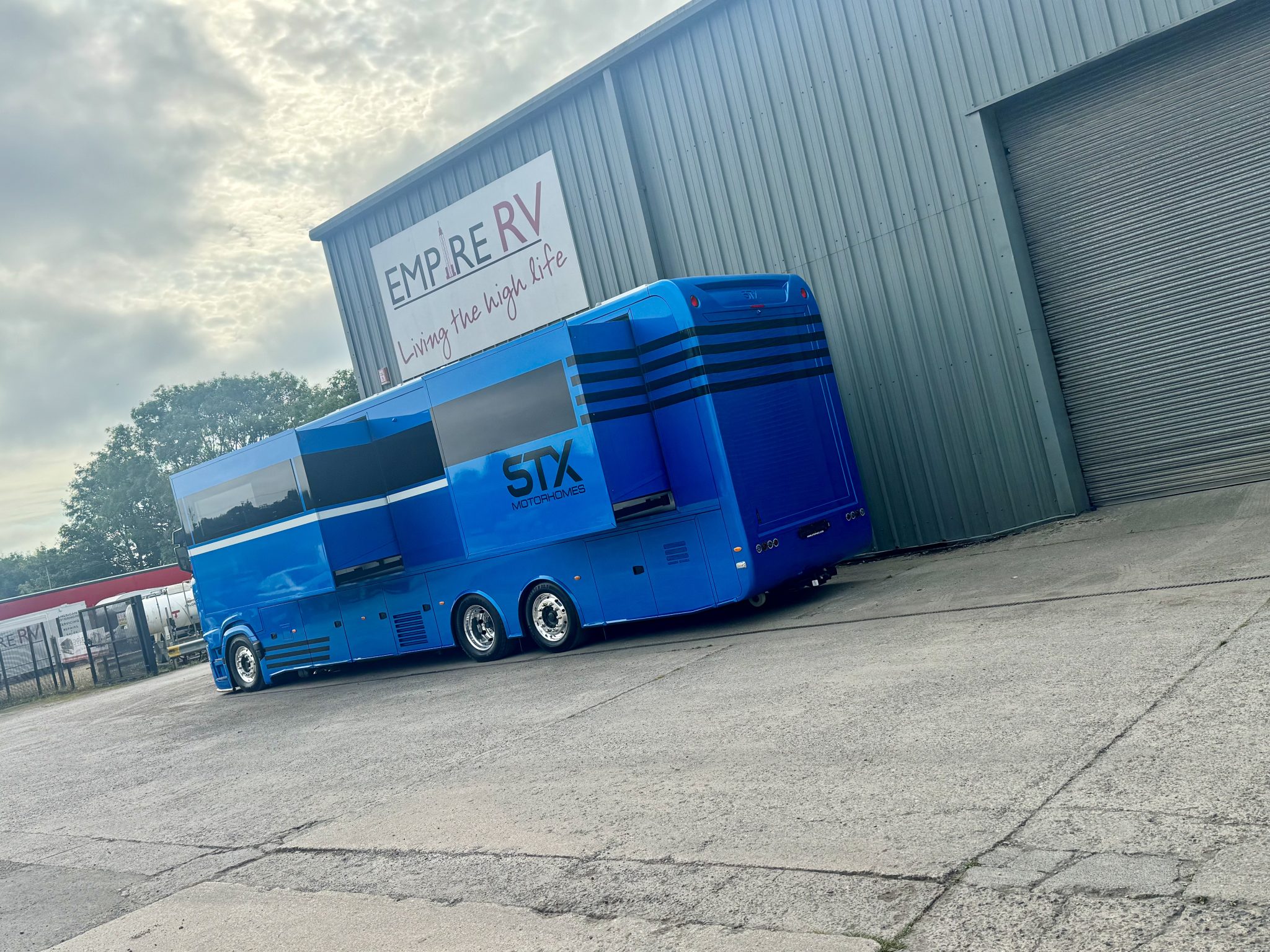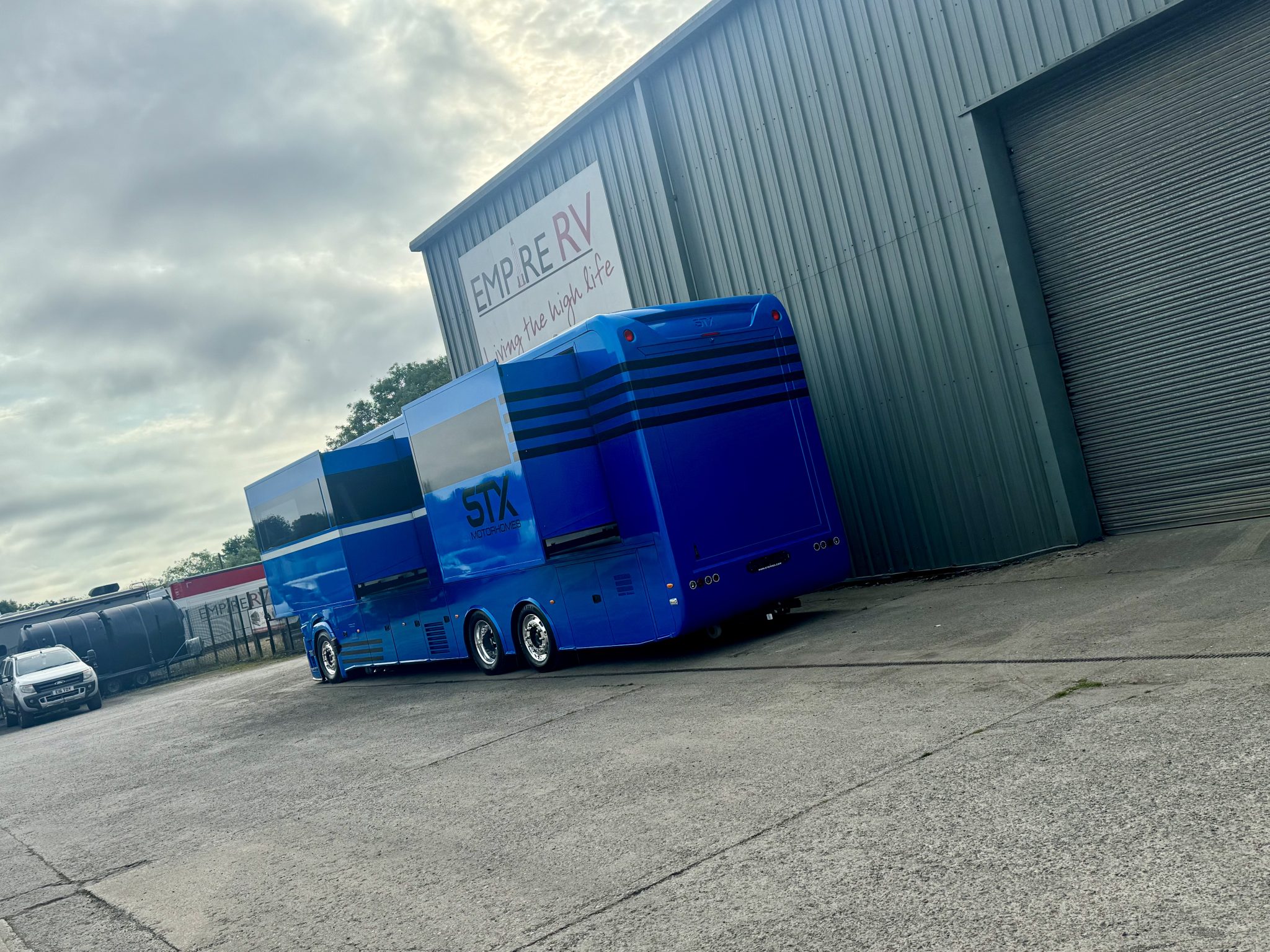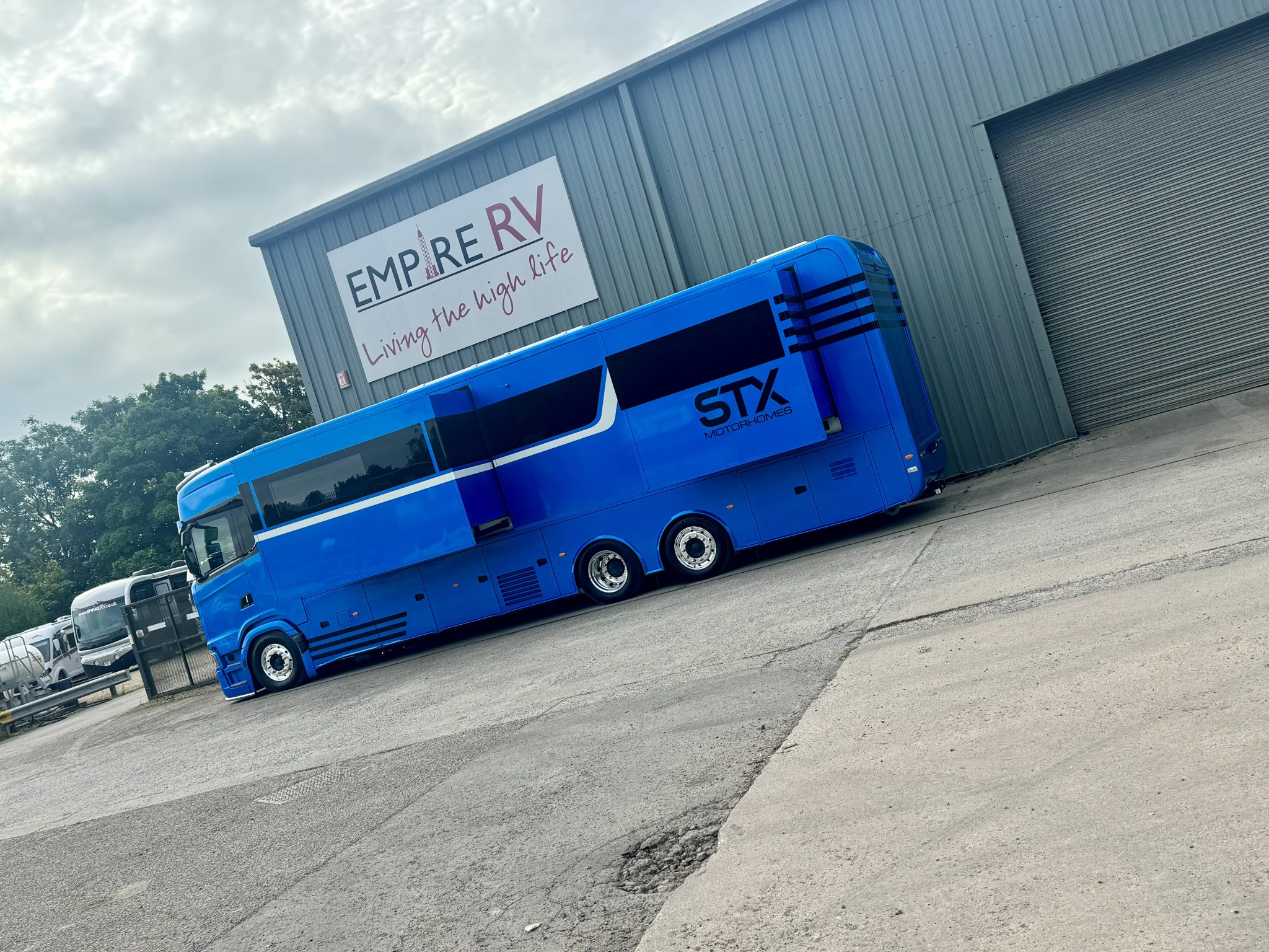 Here we have a beautiful 4 Pop Out STX Motorhome built on a Scania 770 Chassis and finished with a eye catching Alpine Blue exterior. This prestige STX Motorhome offers you a very versatile floorplan as it is one of only two STX Motorhomes built with bunks thus making it an 8 berth with a high end luxurious finish and is in stock ready to go.