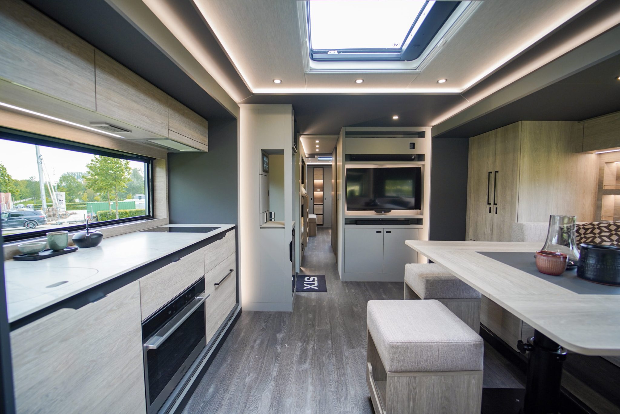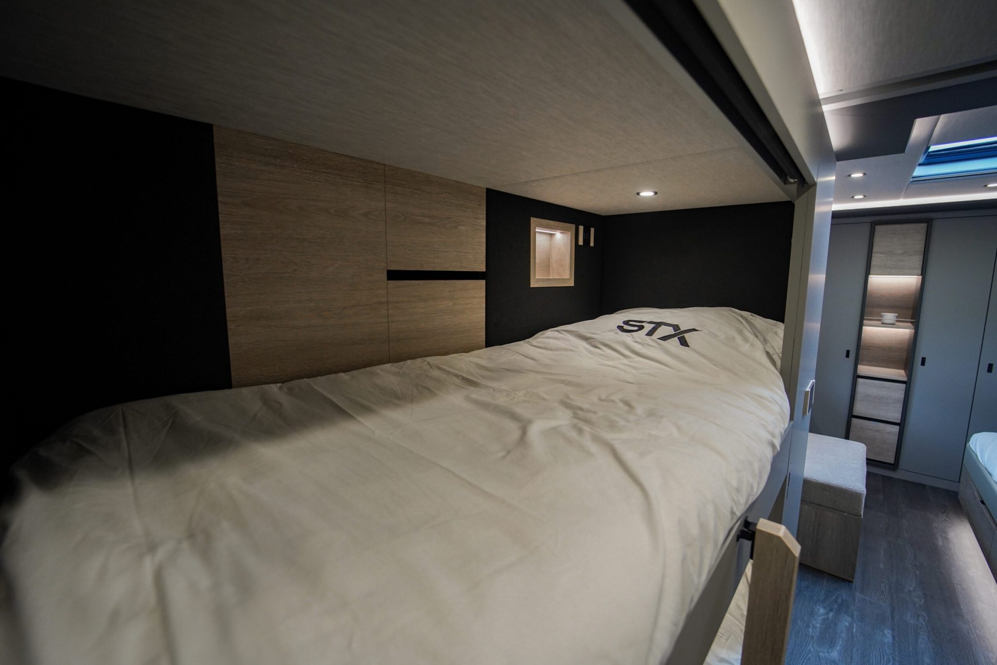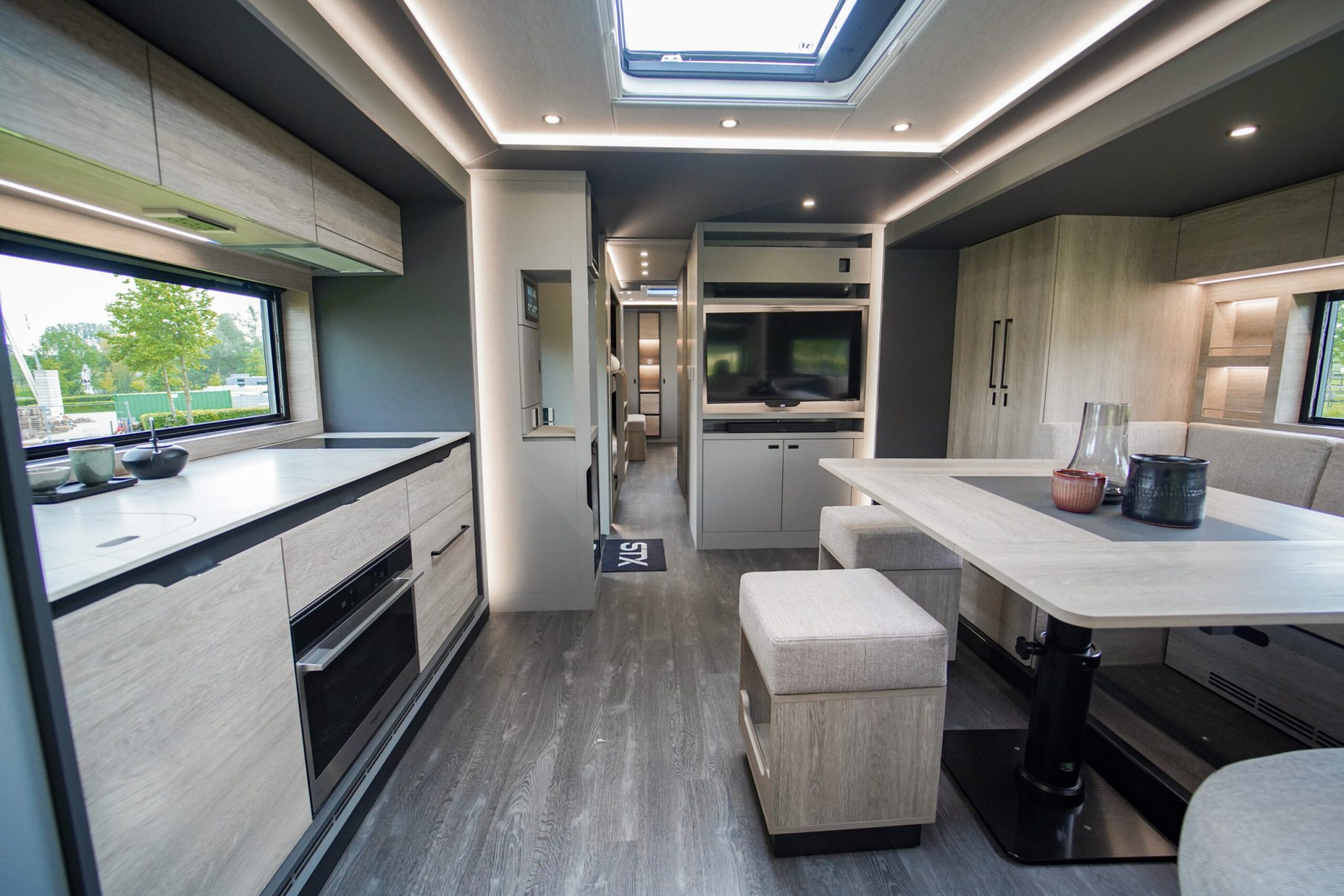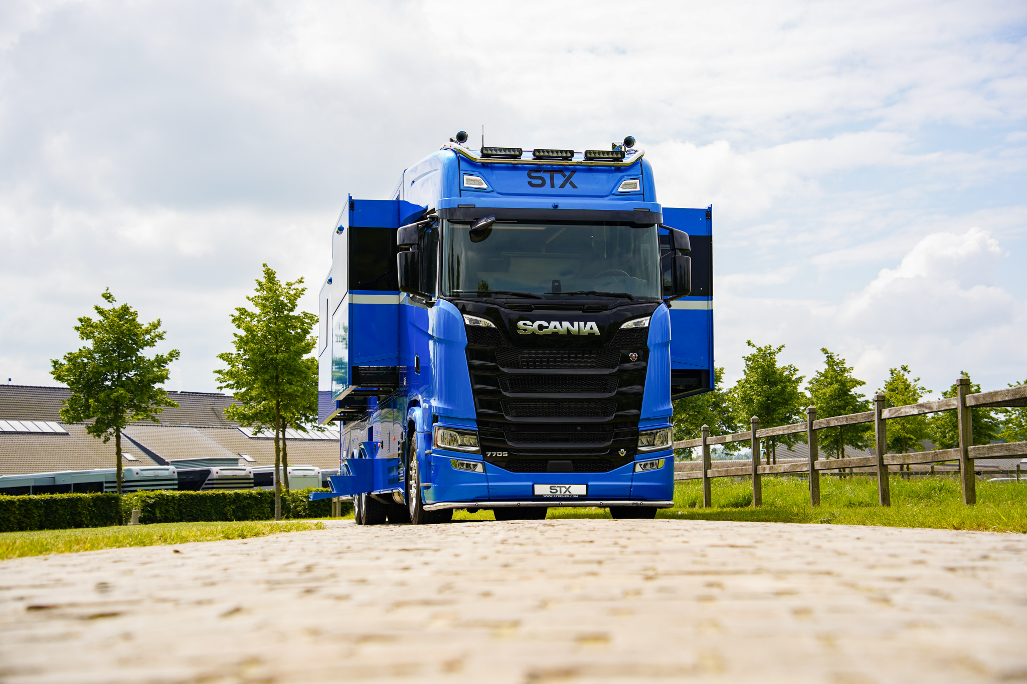 Here we have a beautiful 4 Pop Out STX Motorhome built on a Scania 770 Chassis and finished with a eye catching Alpine Blue exterior. This prestige STX Motorhome offers you a very versatile floorplan as it is one of only two STX Motorhomes built with bunks thus making it an 8 berth with a high end luxurious finish and is in stock ready to go.