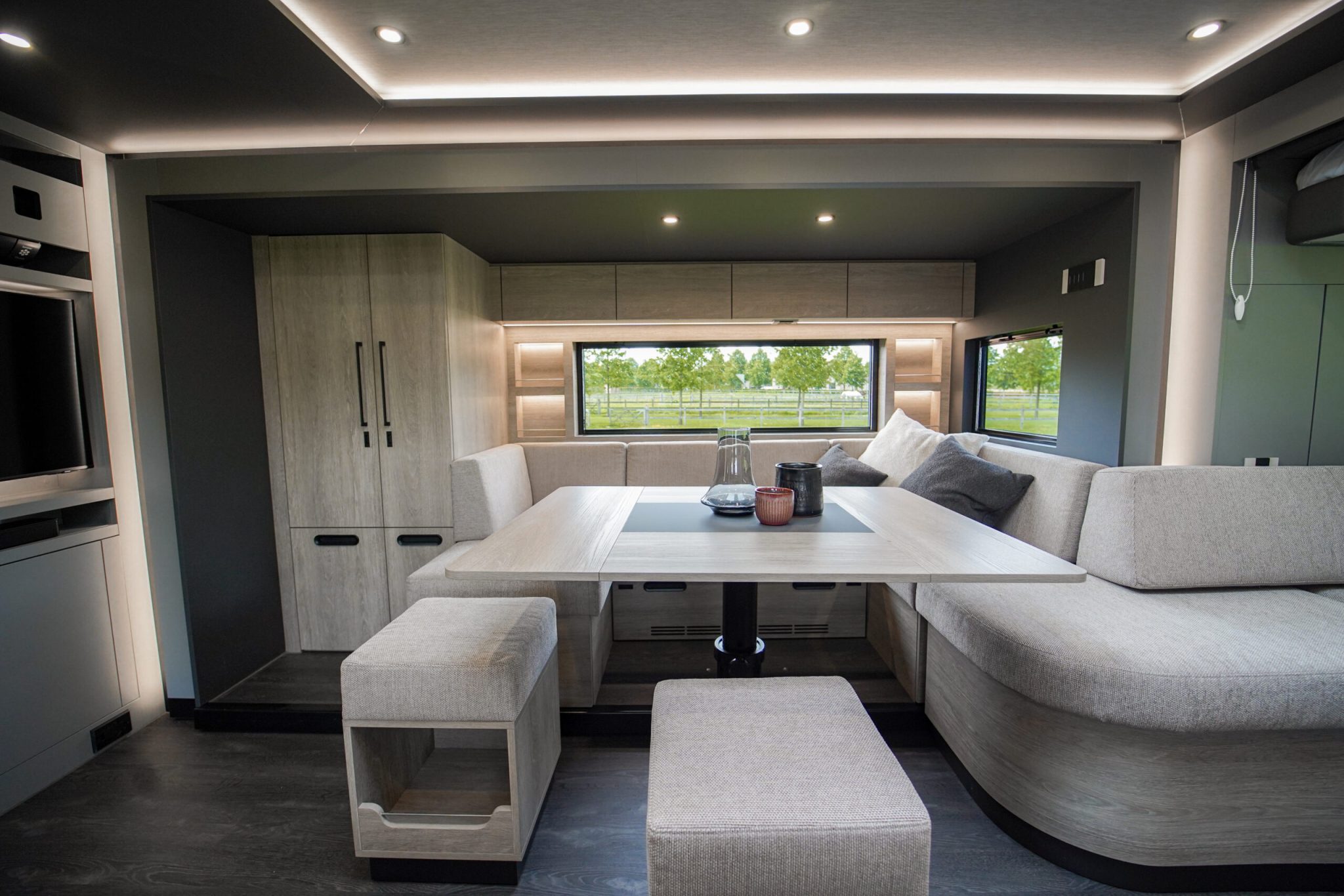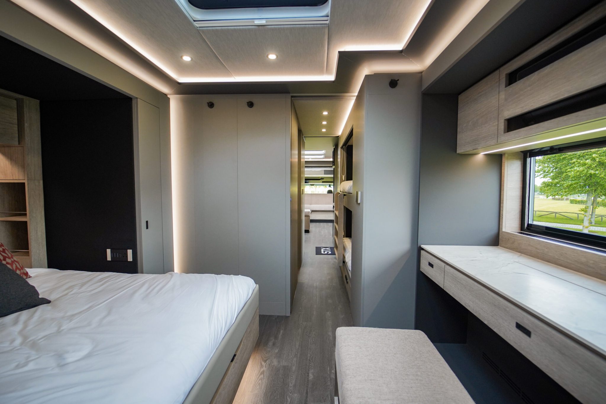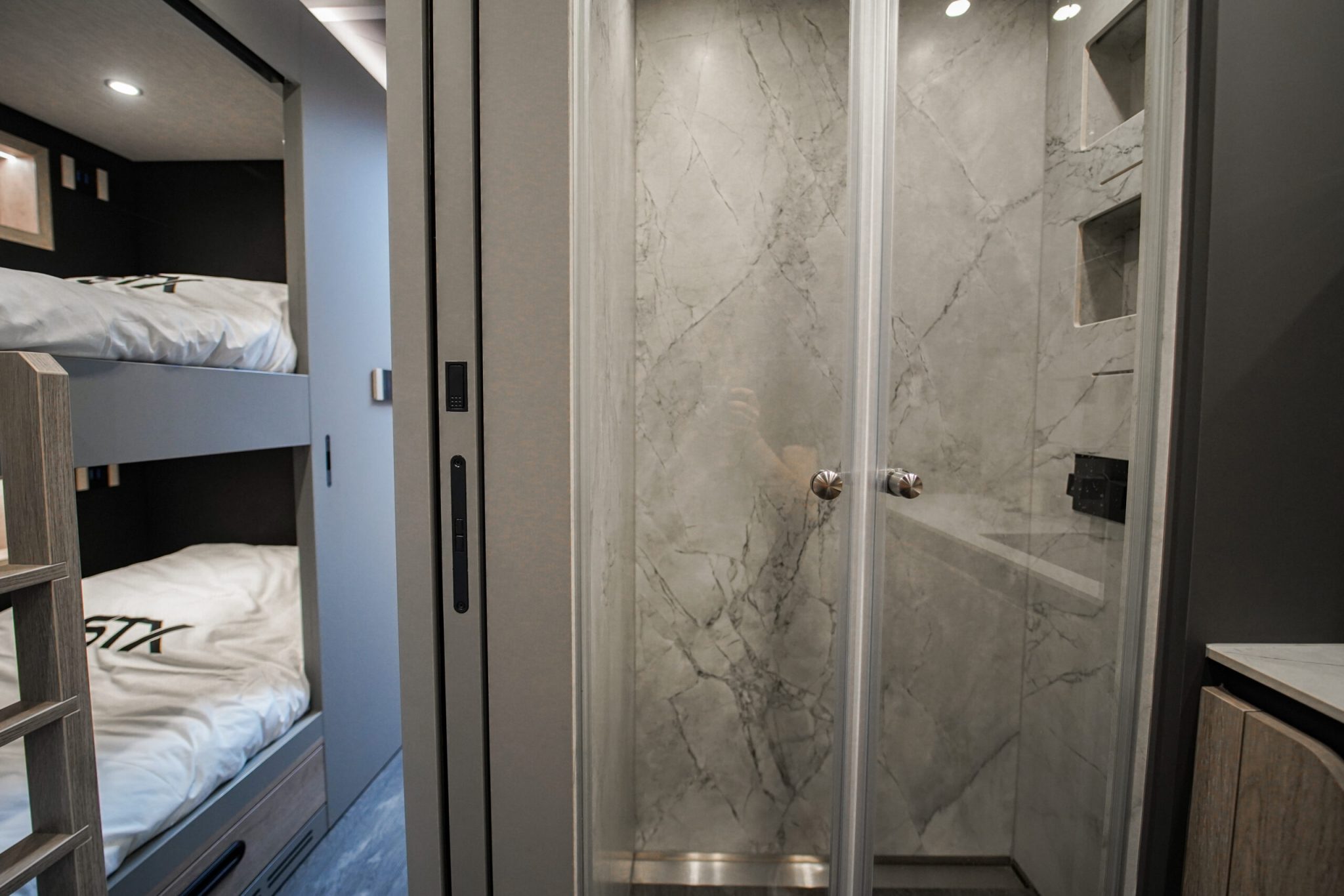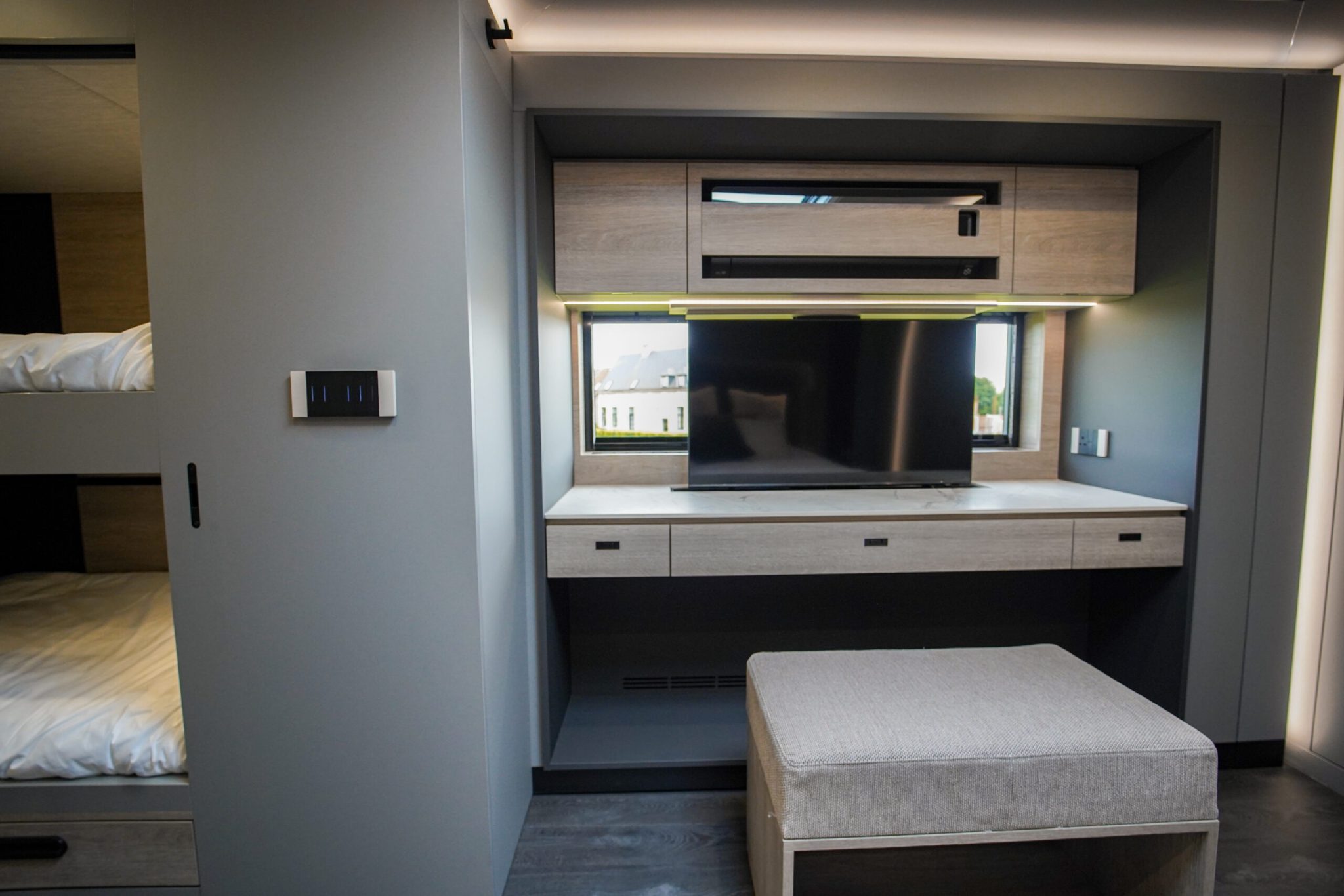 Two rolling curtains between the cabin and the living room