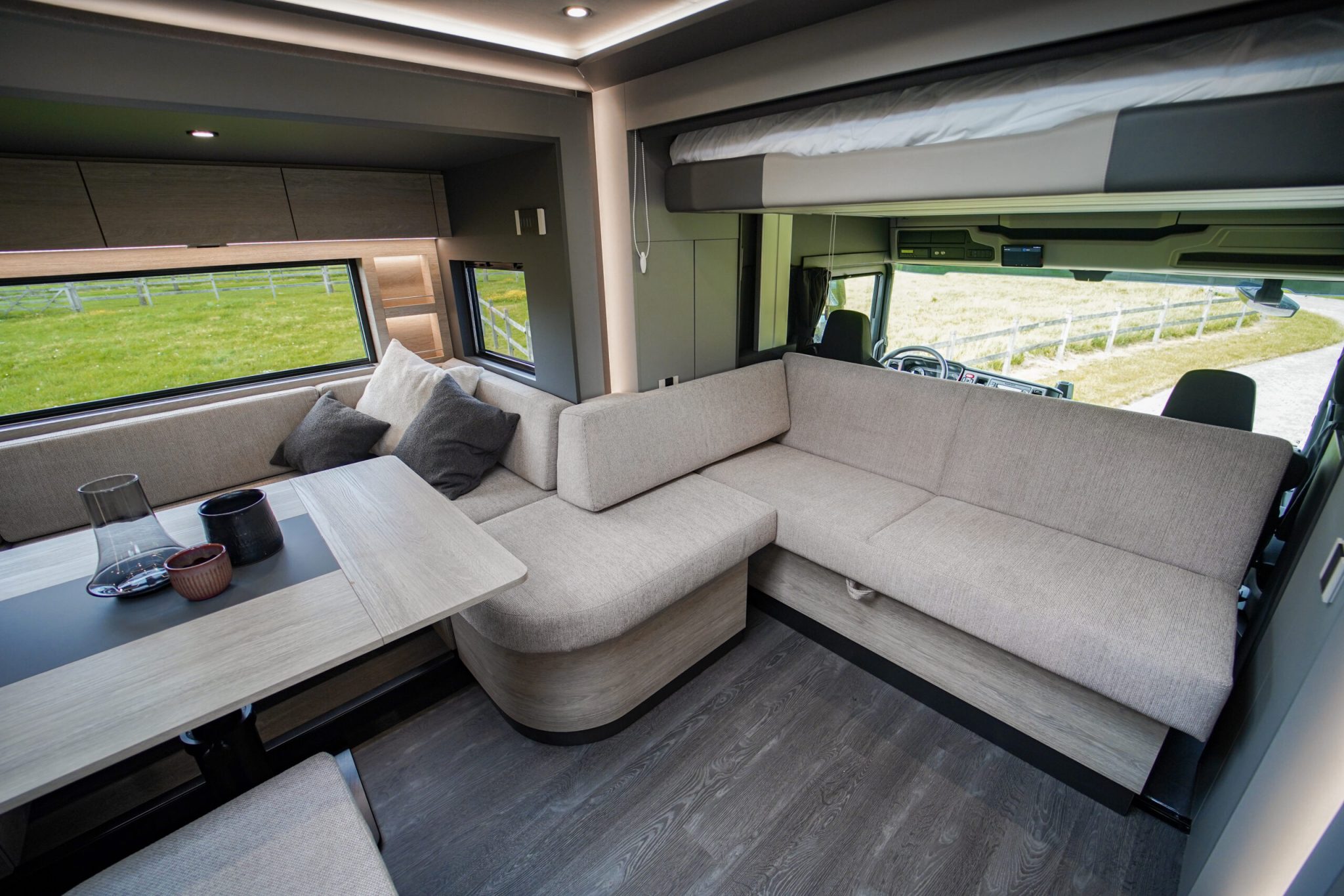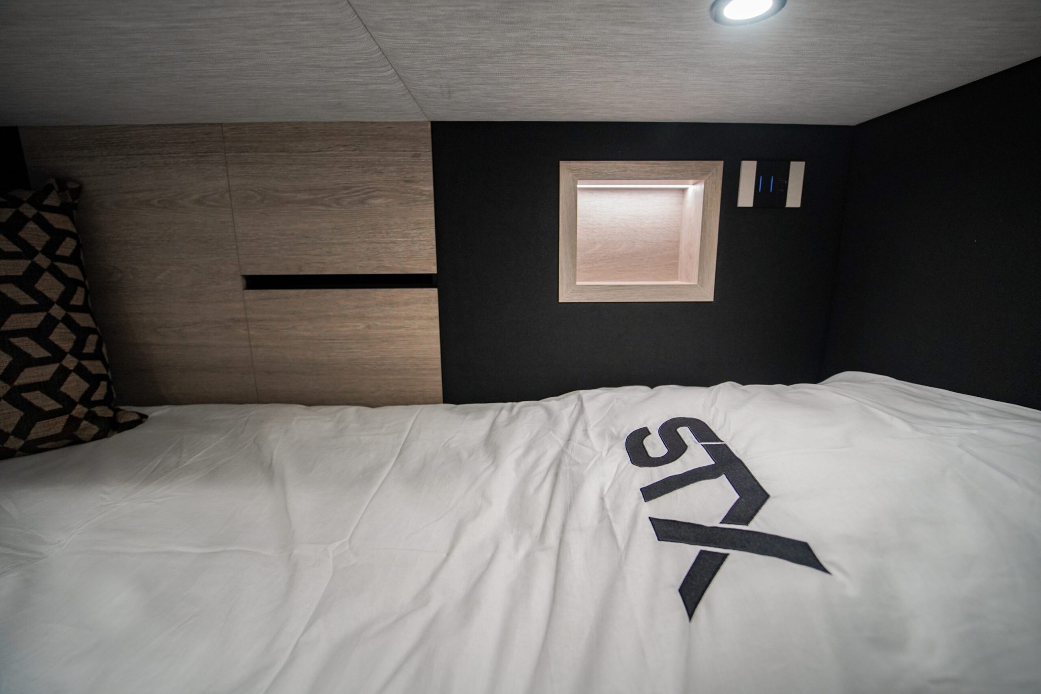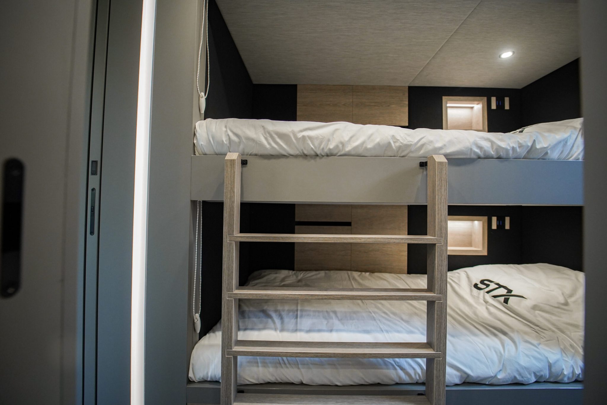 Two rolling curtains between the cabin and the living room