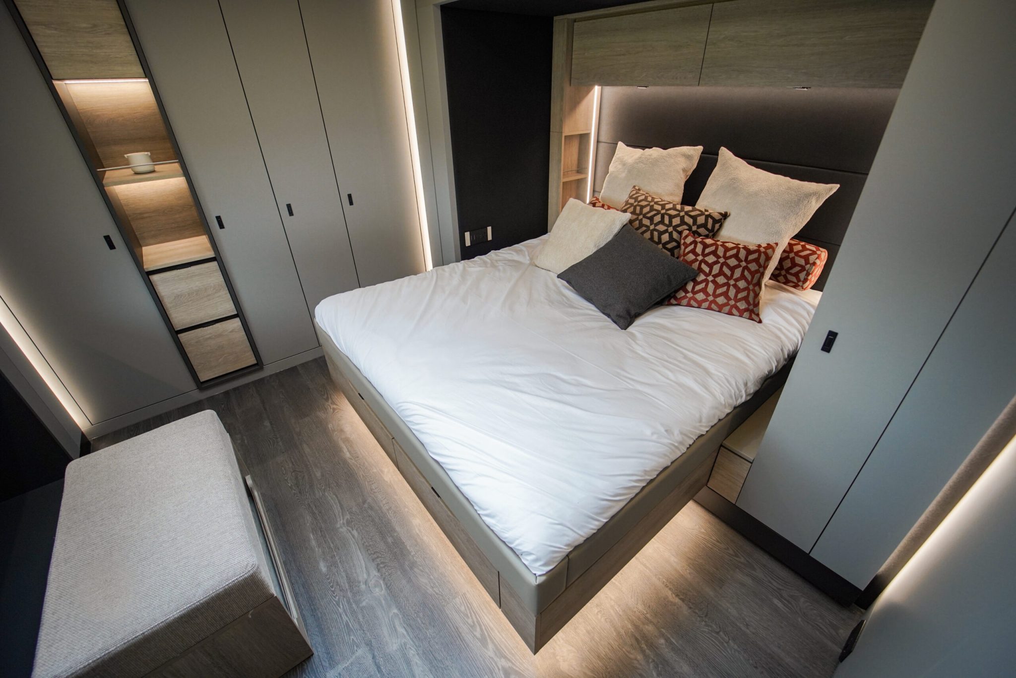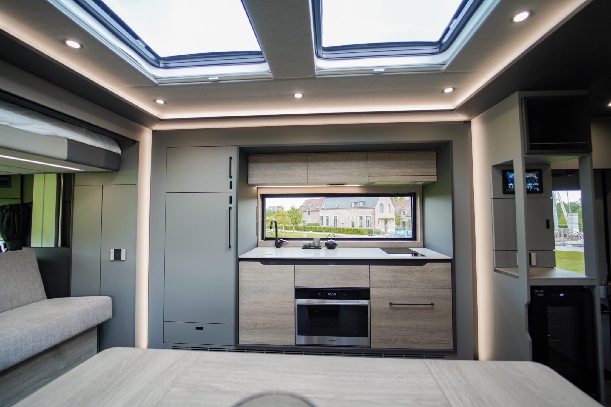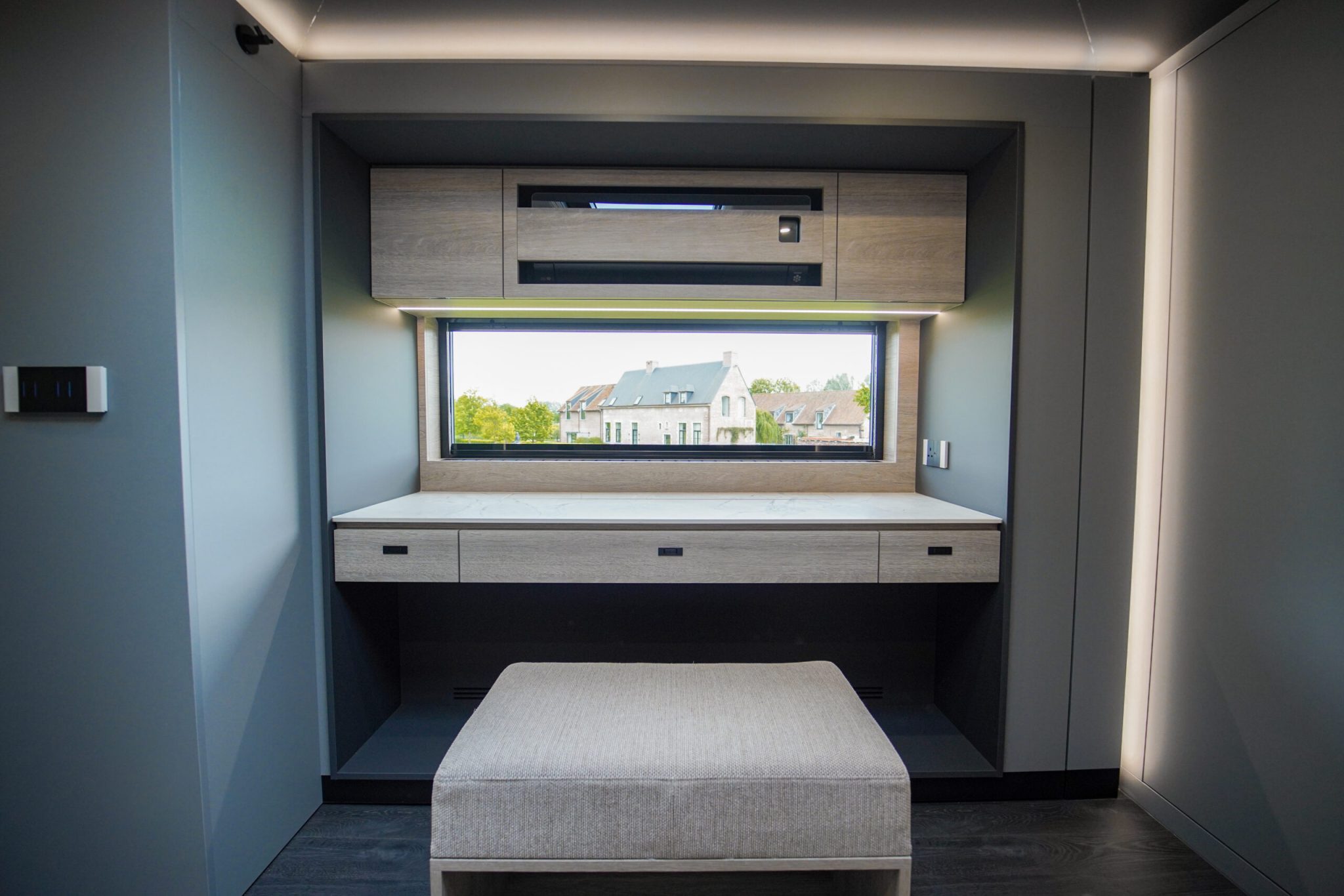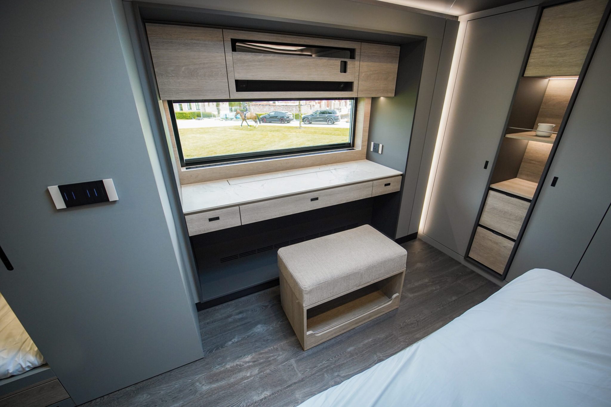 Two rolling curtains between the cabin and the living room