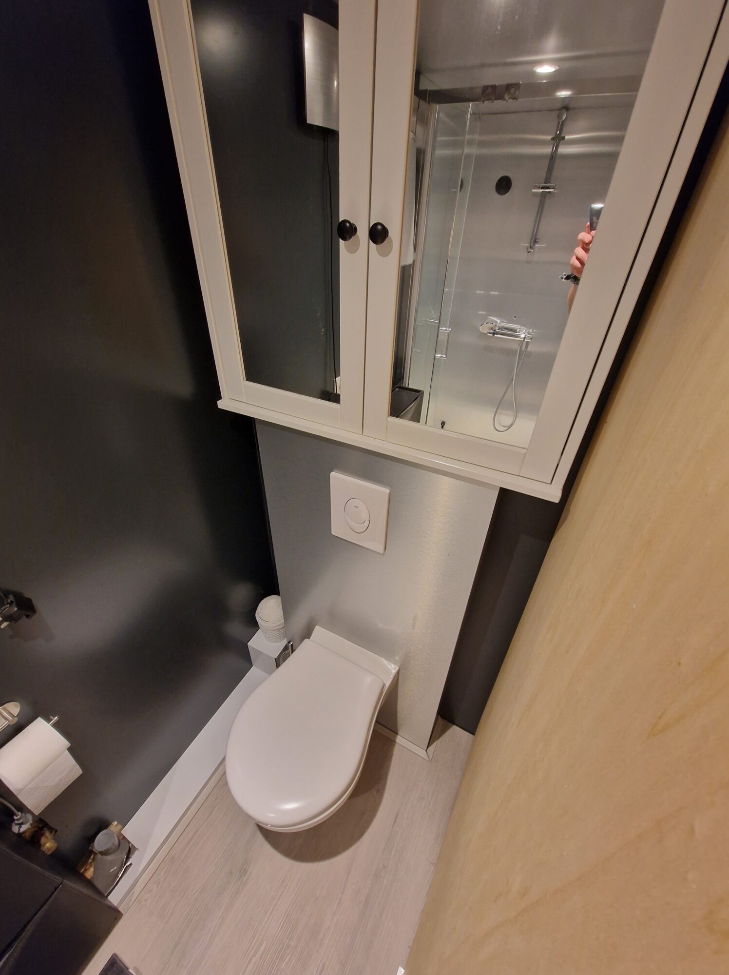 4-burner gas stove, 50L electric boiler, flush toilet, and standard grid connection